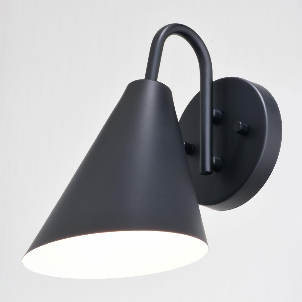 The Hanson outdoor wall light is personified by its simplicity and great value. Contemporary in styling, a clean cone shaped shade angles downward to expose a light source. with a matte black finish, this wall light is the perfect solution for your outdoor or indoor setting. The fixture is dark sky compliant. Accent your home's back porch, entryway, and even your bathroom or kitchen.