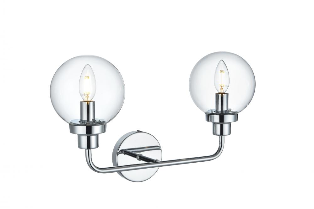 Add a touch of timeless elegance to your home with this sophisticated wall sconce. Available in five gorgeous finishes—Satin Gold, Black, Brass, Chrome, and Polished Nickel—this fixture is designed to complement a wide range of interior styles. The clear glass globe offers a modern yet classic aesthetic, gently diffusing light to create a warm and inviting atmosphere. Whether installed facing up or down, this wall sconce brings versatility and charm to any room, making it an ideal choice for bathrooms, bedrooms, hallways, or living areas. The two E12 socket accommodates a variety of bulb types (bulb not included), providing the freedom to tailor the light to your preferred level of brightness. Enhance your space with the graceful lines and soft illumination of this stunning wall sconce, and enjoy a beautiful blend of style and functionality.