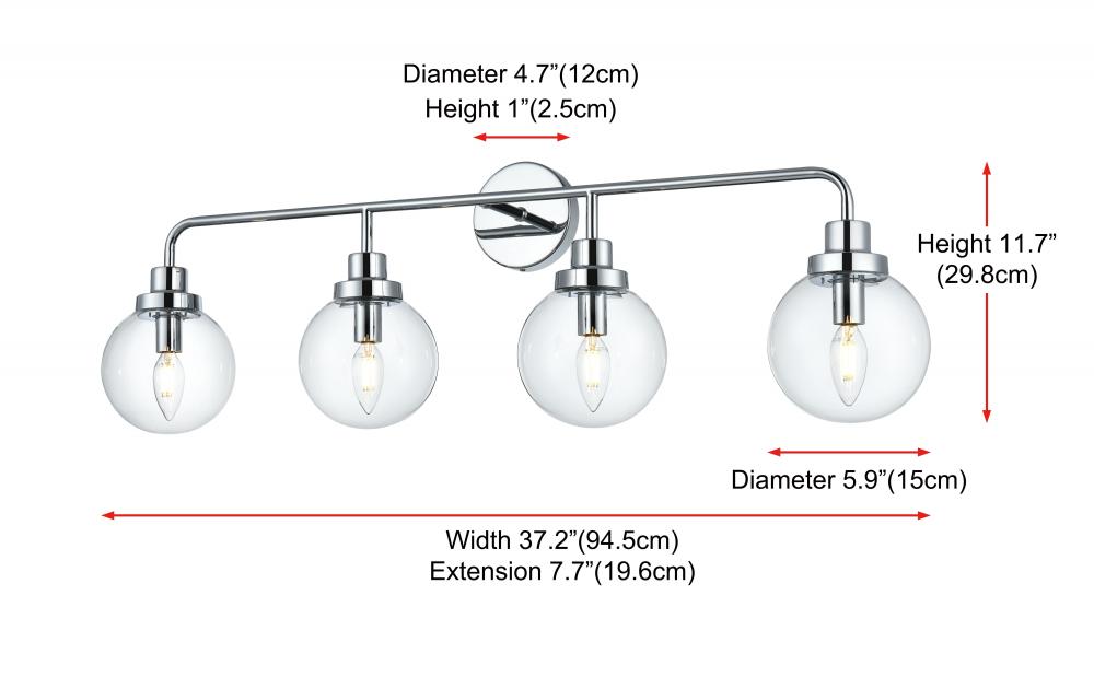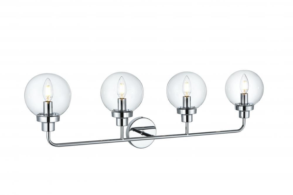 Add a touch of timeless elegance to your home with this sophisticated wall sconce. Available in five gorgeous finishes—Satin Gold, Black, Brass, Chrome, and Polished Nickel—this fixture is designed to complement a wide range of interior styles. The clear glass globe offers a modern yet classic aesthetic, gently diffusing light to create a warm and inviting atmosphere. Whether installed facing up or down, this wall sconce brings versatility and charm to any room, making it an ideal choice for bathrooms, bedrooms, hallways, or living areas. The four E12 socket accommodates a variety of bulb types (bulb not included), providing the freedom to tailor the light to your preferred level of brightness. Enhance your space with the graceful lines and soft illumination of this stunning wall sconce, and enjoy a beautiful blend of style and functionality.