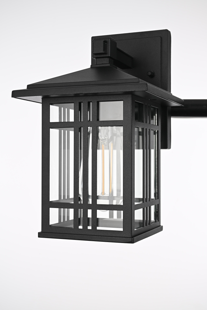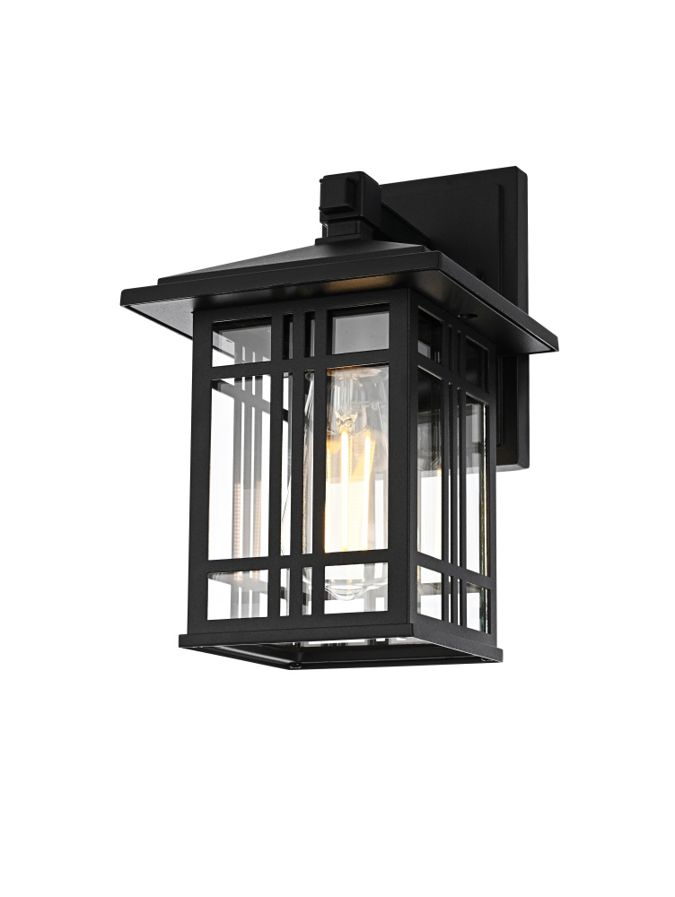 This outdoor wall light features a bold geometric metal frame with a grid-inspired design, bringing a structured, architectural presence to covered exterior spaces. The clear glass panels provide full visibility of the bulbs, maximizing illumination while maintaining a defined, modern look. Built from iron and aluminum, the black-finished frame is designed for long-term durability in damp environments. The open-bottom design ensures easy bulb changes, while the flush mount installation makes it ideal for covered patios, porches, breezeways, and entryways. Requiring one medium-base E26 bulb (not included), this fixture is also dimmable, allowing for adjustable brightness. ETL Wet Rated, this light is built to withstand humidity and moisture while delivering a modern, structured aesthetic for outdoor spaces. Built with marine-grade, corrosion-resistant aluminum, this sconce withstands coastal conditions for long-lasting durability.