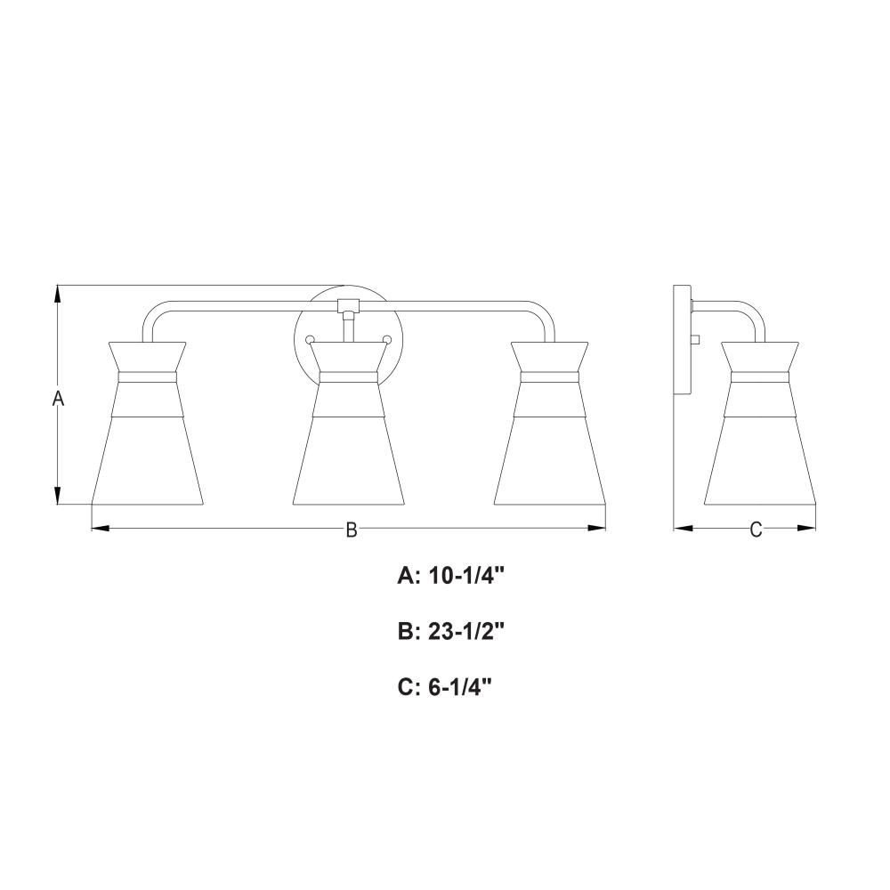 23.5-in W x 10.25-in H x 6.25-in D with 5-in W x 5-in H backplate