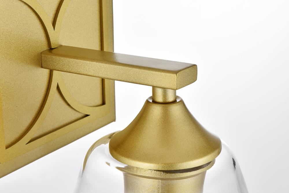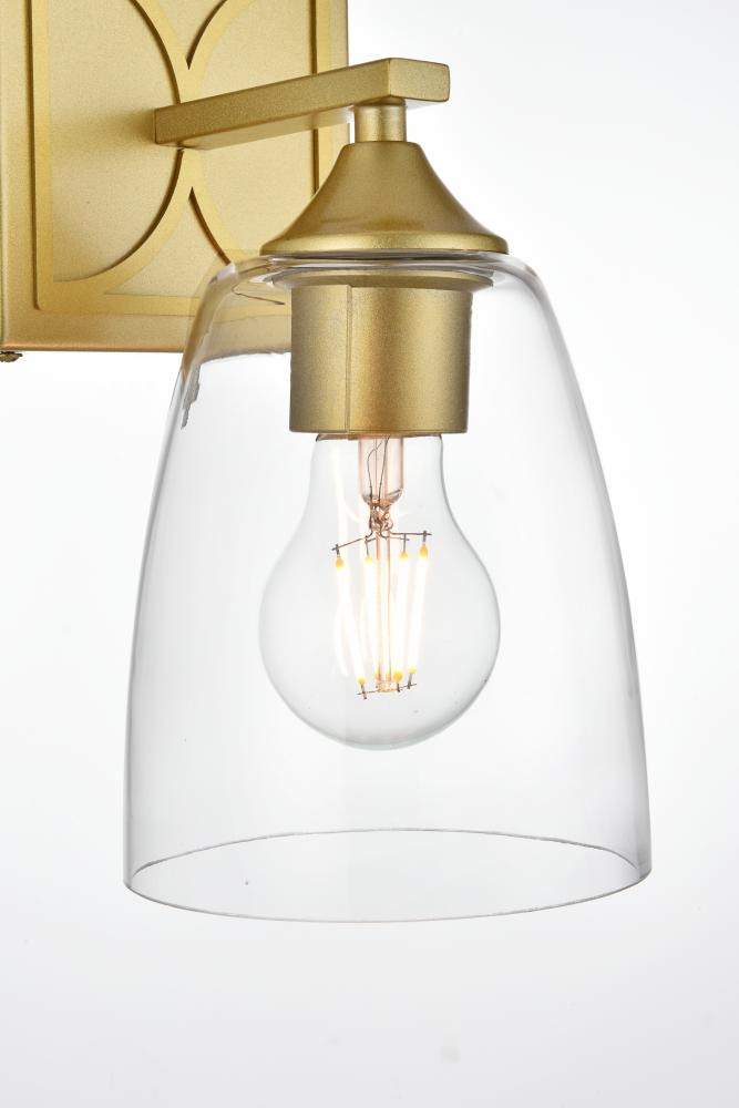 Defined by a sleek metal arm extends to suspend the clear tapered glass shade. A contemporary stunner, it shows off the straight line details from the backplate and the streamline thin metal arm. Compatible with dimmers, so you'll have the right amount of light in any given time of the day. Completely versatile, you can place this wall light as an uplight or downlight. Rated for use in damp locations, this will work perfectly over a vanity in your bathroom.