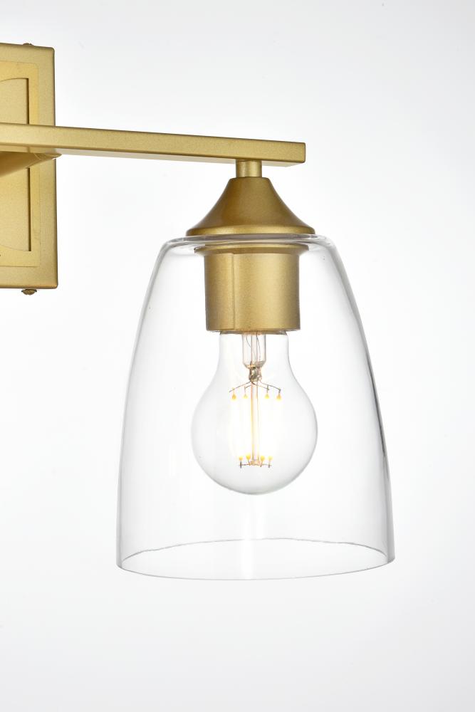 Defined by a sleek metal arm extends to suspend the clear tapered glass shade. A contemporary stunner, it shows off the straight line details from the backplate and the streamline thin metal arm. Compatible with dimmers, so you'll have the right amount of light in any given time of the day. Completely versatile, you can place this wall light as an uplight or downlight. Rated for use in damp locations, this will work perfectly over a vanity in your bathroom.