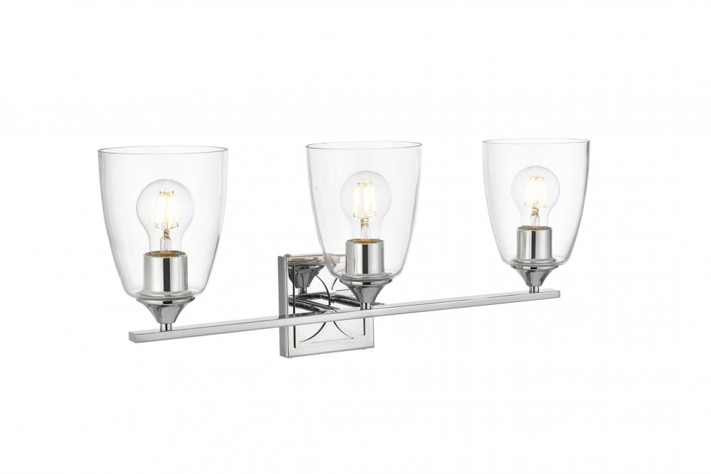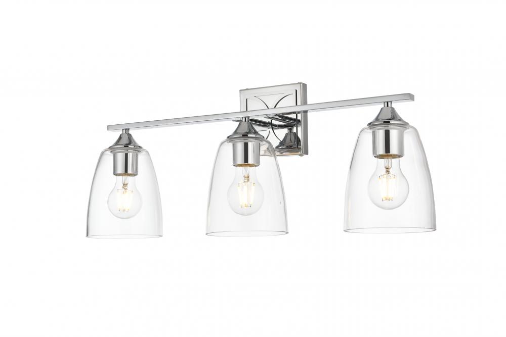 Defined by a sleek metal arm extends to suspend the clear tapered glass shade. A contemporary stunner, it shows off the straight line details from the backplate and the streamline thin metal arm. Compatible with dimmers, so you'll have the right amount of light in any given time of the day. Completely versatile, you can place this wall light as an uplight or downlight. Rated for use in damp locations, this will work perfectly over a vanity in your bathroom.