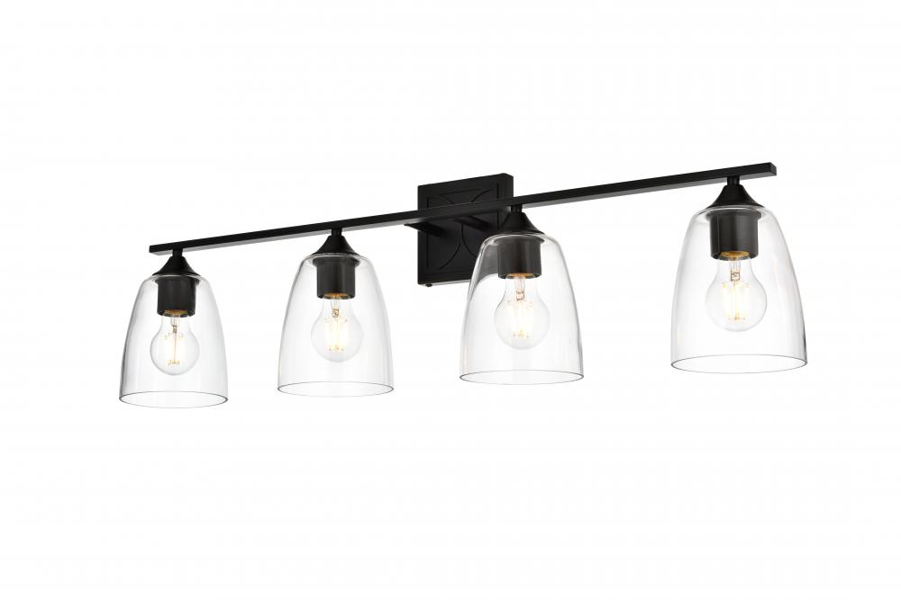Defined by a sleek metal arm extends to suspend the clear tapered glass shade. A contemporary stunner, it shows off the straight line details from the backplate and the streamline thin metal arm. Compatible with dimmers, so you'll have the right amount of light in any given time of the day. Completely versatile, you can place this wall light as an uplight or downlight. Rated for use in damp locations, this will work perfectly over a vanity in your bathroom.