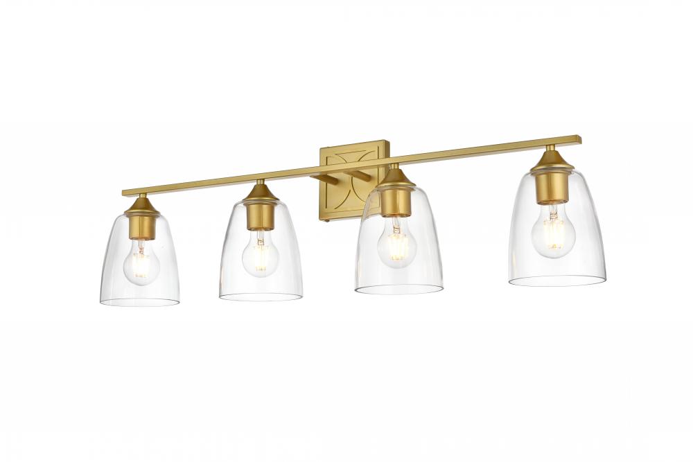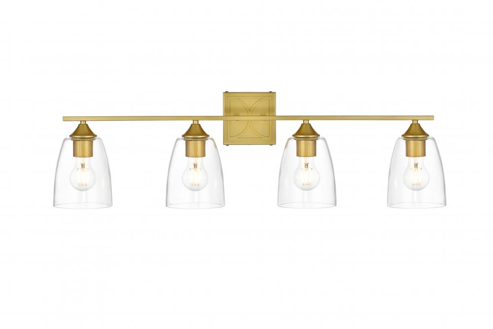 Defined by a sleek metal arm extends to suspend the clear tapered glass shade. A contemporary stunner, it shows off the straight line details from the backplate and the streamline thin metal arm. Compatible with dimmers, so you'll have the right amount of light in any given time of the day. Completely versatile, you can place this wall light as an uplight or downlight. Rated for use in damp locations, this will work perfectly over a vanity in your bathroom.