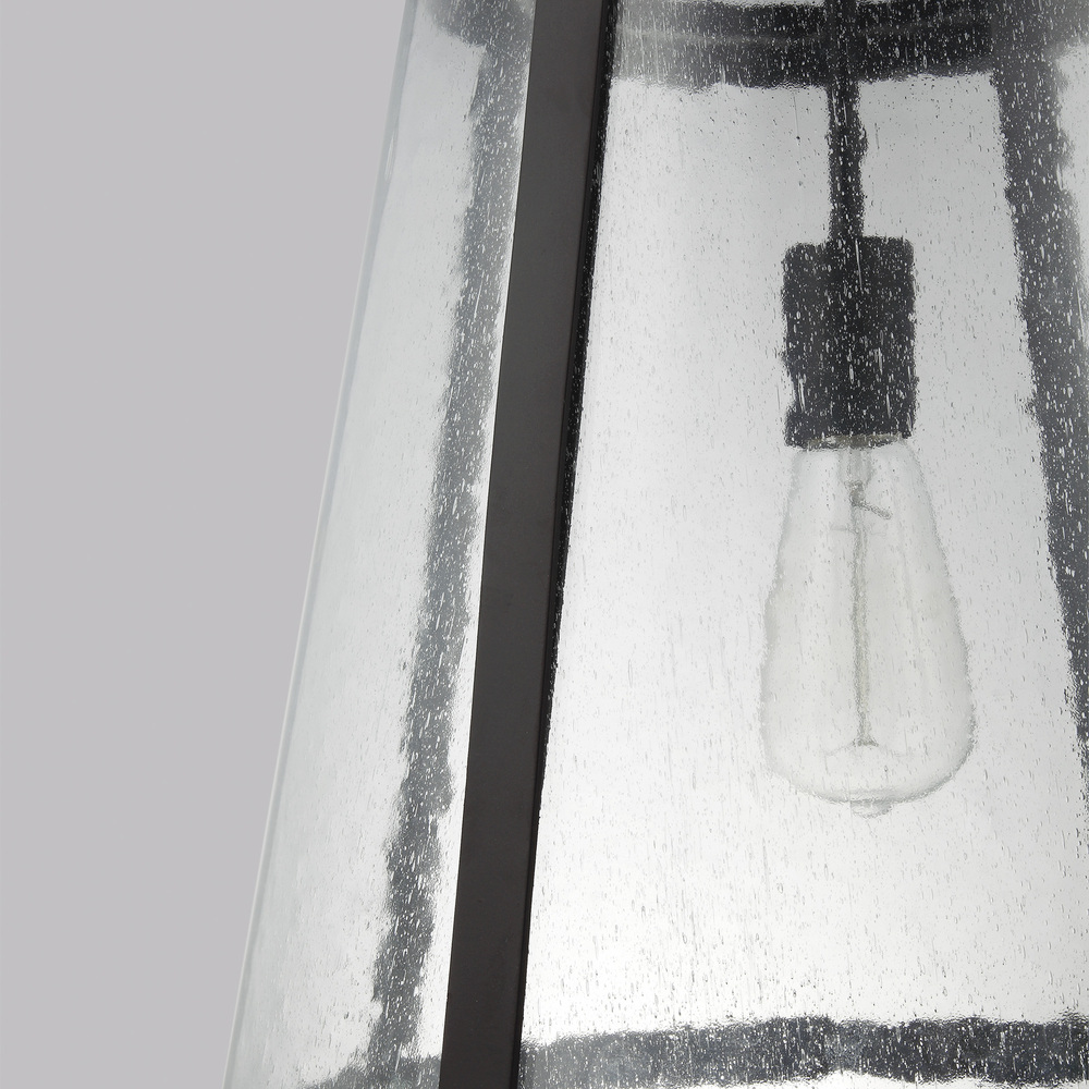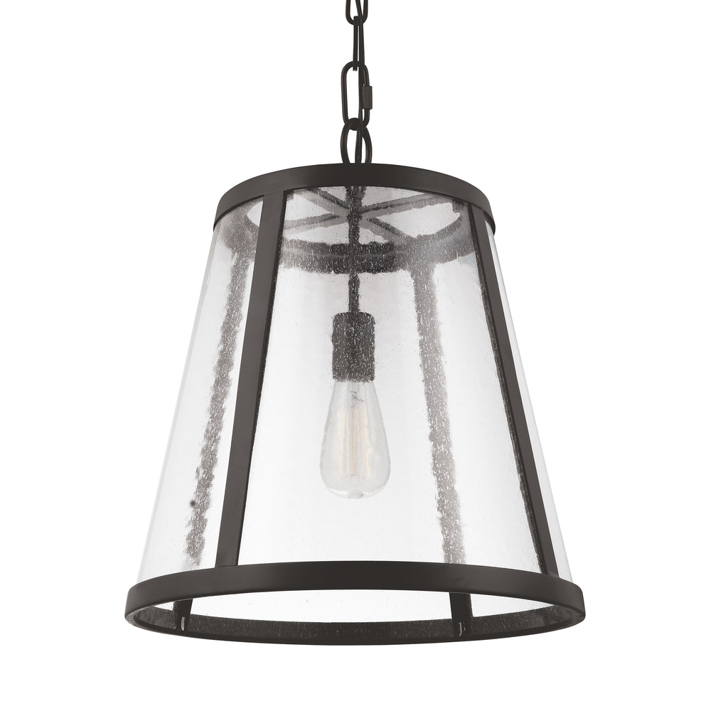 Combining the traditional profile of a tapered shade with on-trend Clear Seeded glass, the sleek frame and the square-linked chain give the Harrow pendant light collection an elevated, contemporary, transitional look. The wall sconce is delivered with two glass options, Clear Seeded and Opal Etched, for the customer's choice to customize. Burnished Brass, Oil Rubbed Bronze, and Polished Nickel finishes are available to create completely different looks.