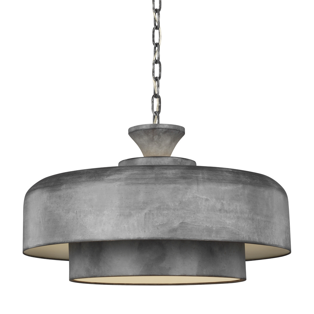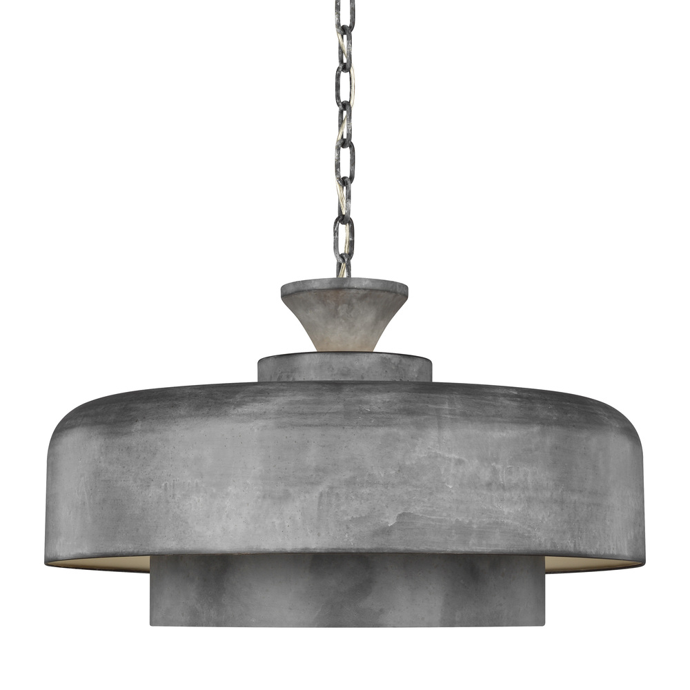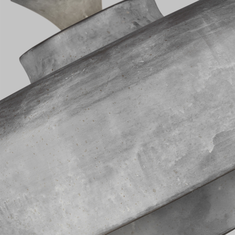 The Haymarket one light indoor pendant in weathered galvanized supplies ample lighting for your daily needs, while adding a layer of today's style to your home's décor. Mid-century design meets touches of rustic and industrial in the handsome Haymarket pendant. Layered concentric tiers constructed of cast metal add depth and dimension while a painted White interior catches the light. The artisanal hand-applied Weathered Galvanized finish recreates the authenticity of vintage industrial fixtures.