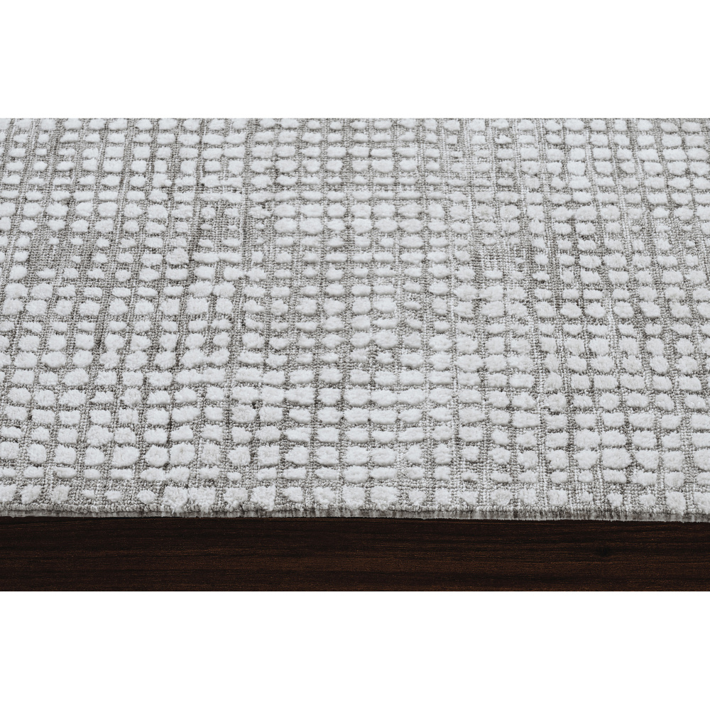 Available in five different sizes, this rug design holds equal beauty in every dimension. Composed of machine knitted micro polyester, it has a unique structure that incorporates texture to the space and the touch. With timeless neutral tones of taupe and ivory coming together in every square, it holds an effortless style fit for the luxe living space.