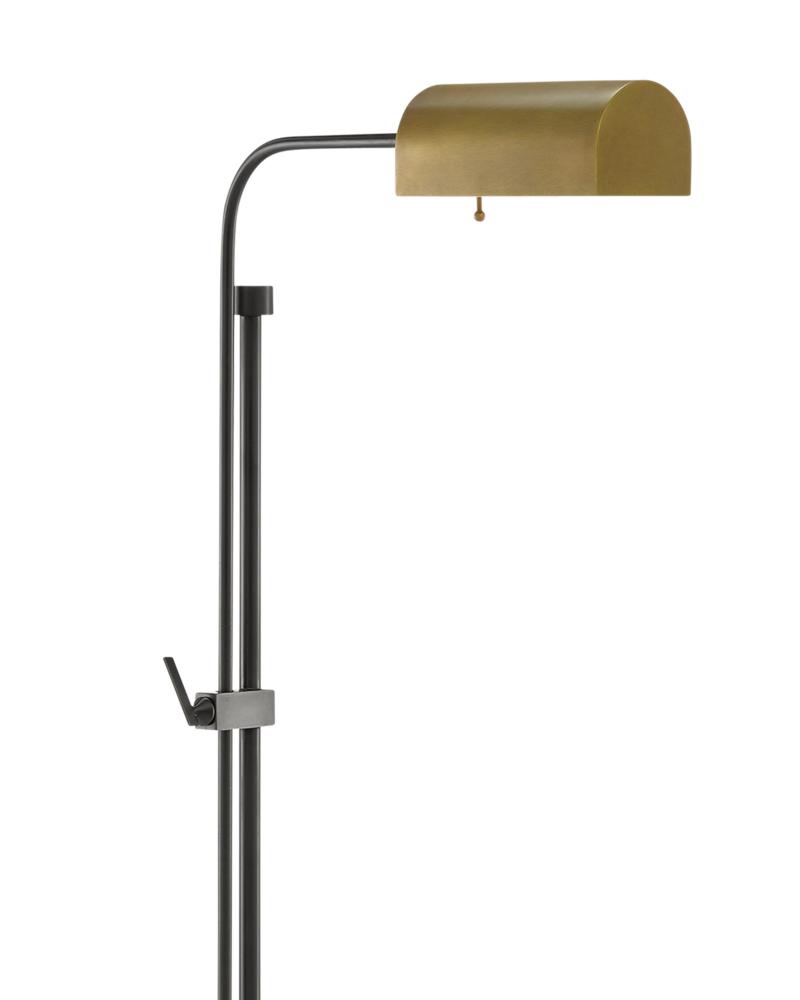 The Hearst Floor Lamp is a firm believer that deftly designed hardware should be front-and-center. The interlocking stems that extend from the metal base to the shade, both in an antique brass finish, have been treated to an oil-rubbed bronze finish to bring this time-honored design an industrial chic vibe. A nostalgic nod on the lamp is the pull chain.