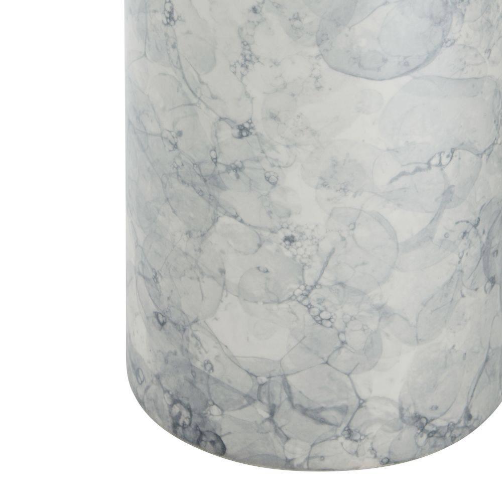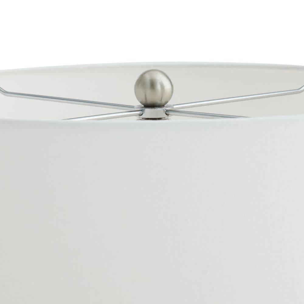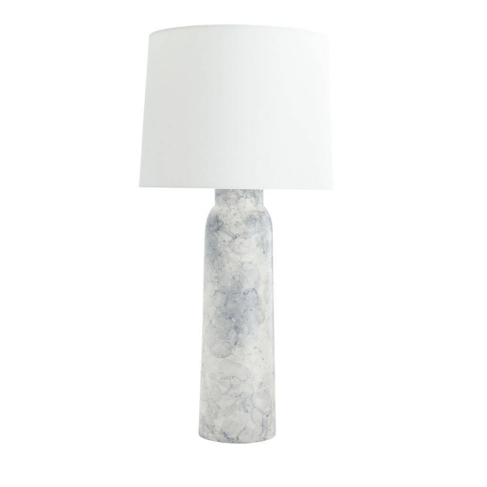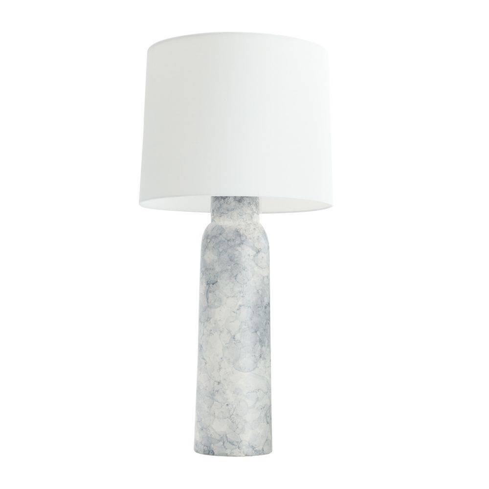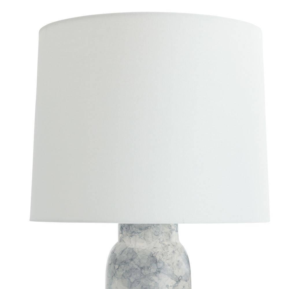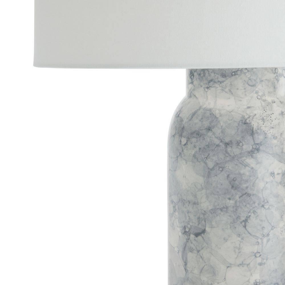A thundercloud finish lends an aquatic appeal to the classic porcelain table lamp. This easy-to-place form emphasizes its pleasing texture. Finished with an off-white linen drum shade lined in white cotton and polished nickel steel hardware. Finish will vary.
