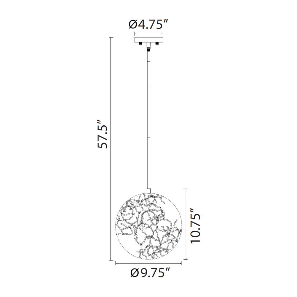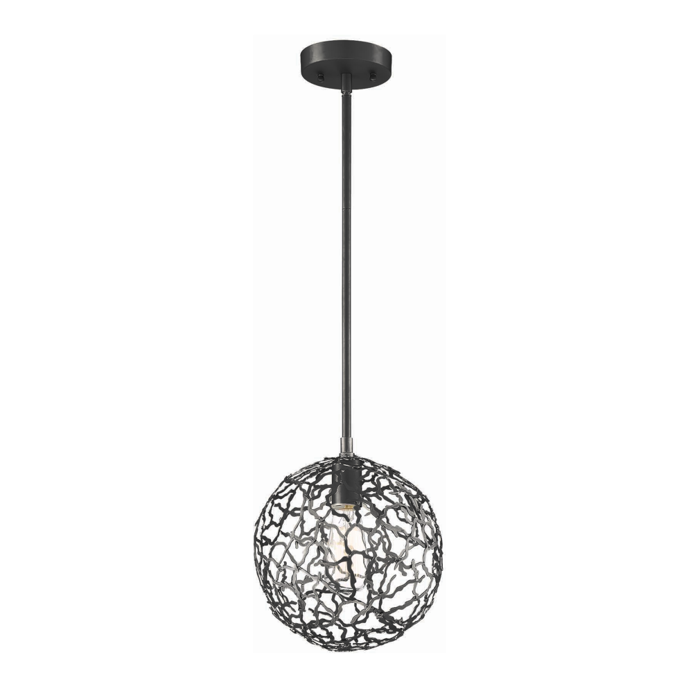 Zeev Lighting Helios Collection 1-Light 10 Inch Globe Pendant with Organic Metal Patterned Round Shade and Matte Black Finish.