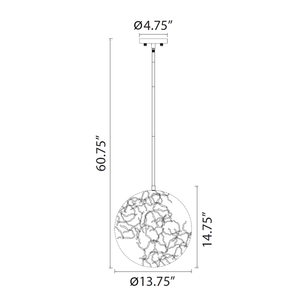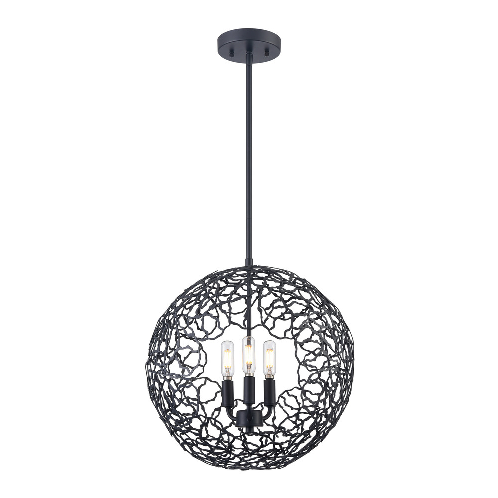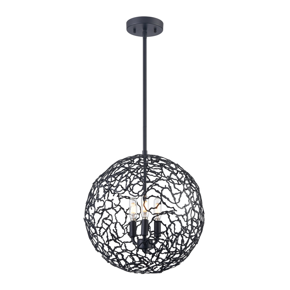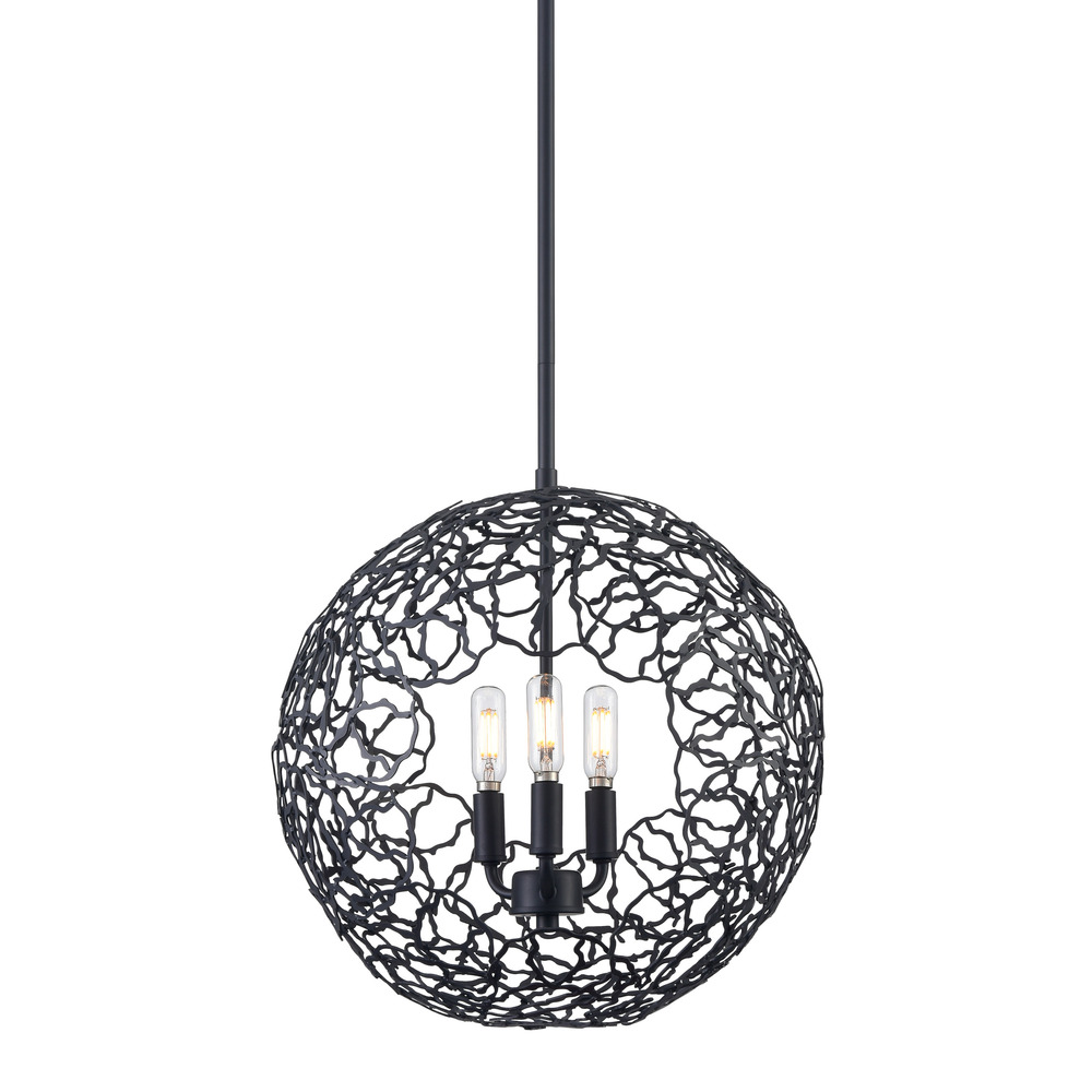 Zeev Lighting Helios Collection 3-Light 14 Inch Globe Pendant with Organic Metal Patterned Round Shade and Matte Black Finish.