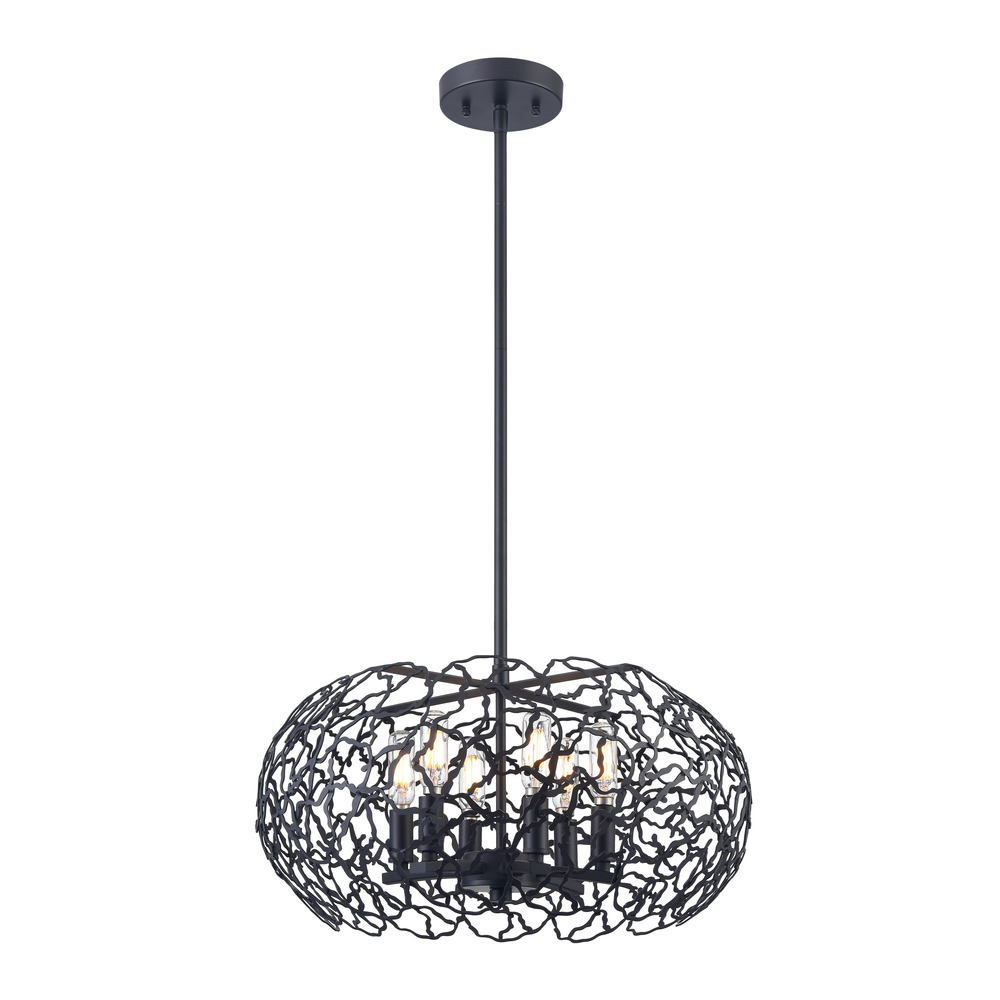 Zeev Lighting Helios Collection 6-Light 18 Inch Pendant Light with Organic Metal Patterned Oval Shade and Matte Black Finish.