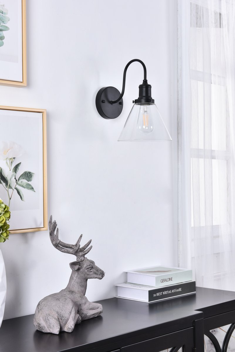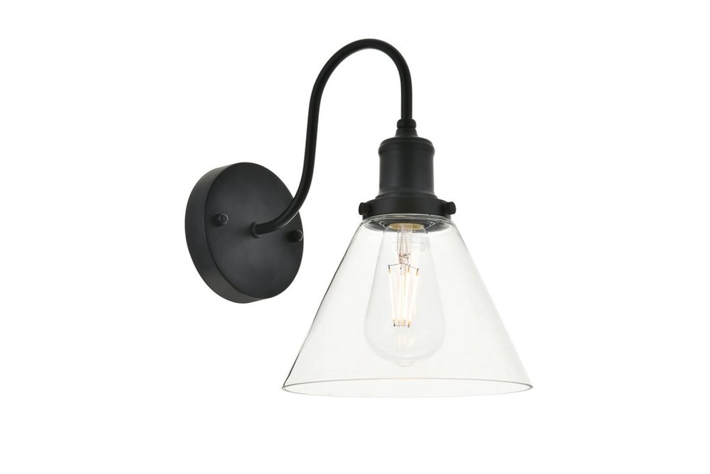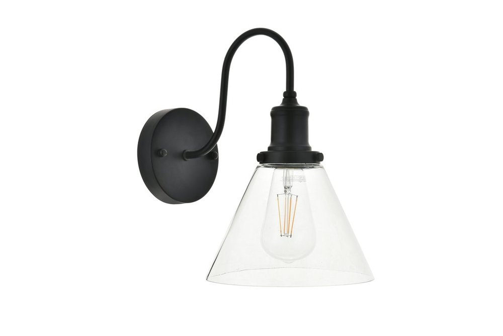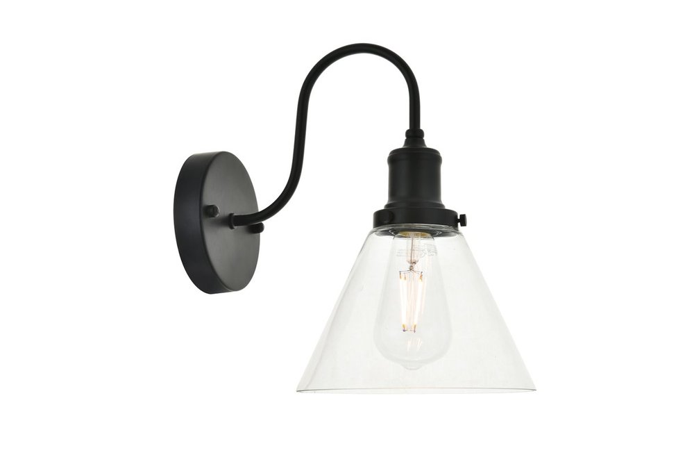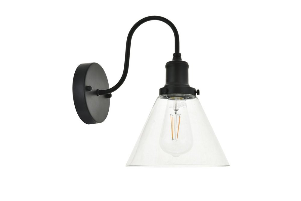 Take a step back through time with the Histoire wall lamp in a black finish. The ever delightful undulating arm supports the clear glass cone shade while light illuminates the surrounding area, creating a beautiful display of charm. A perfect wall lamp to act as your guide in your foyer or living room, or even to light up your bathroom walls, you will always enjoy its captivating light.