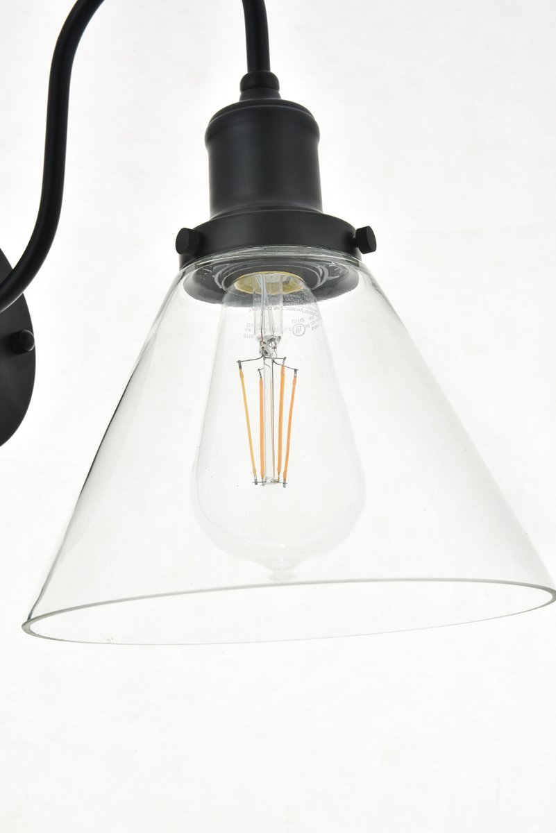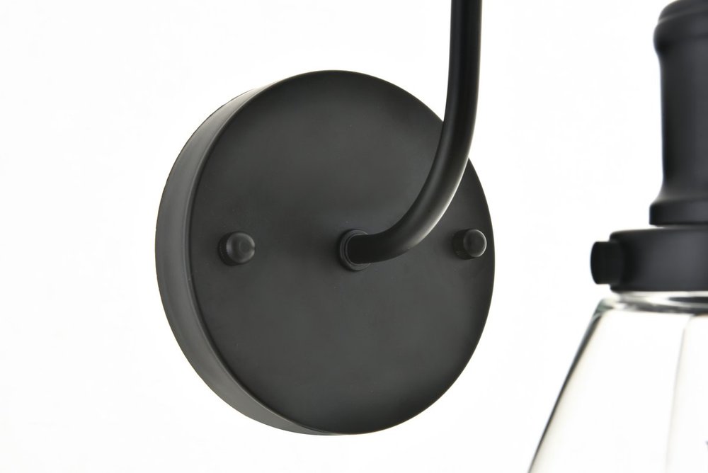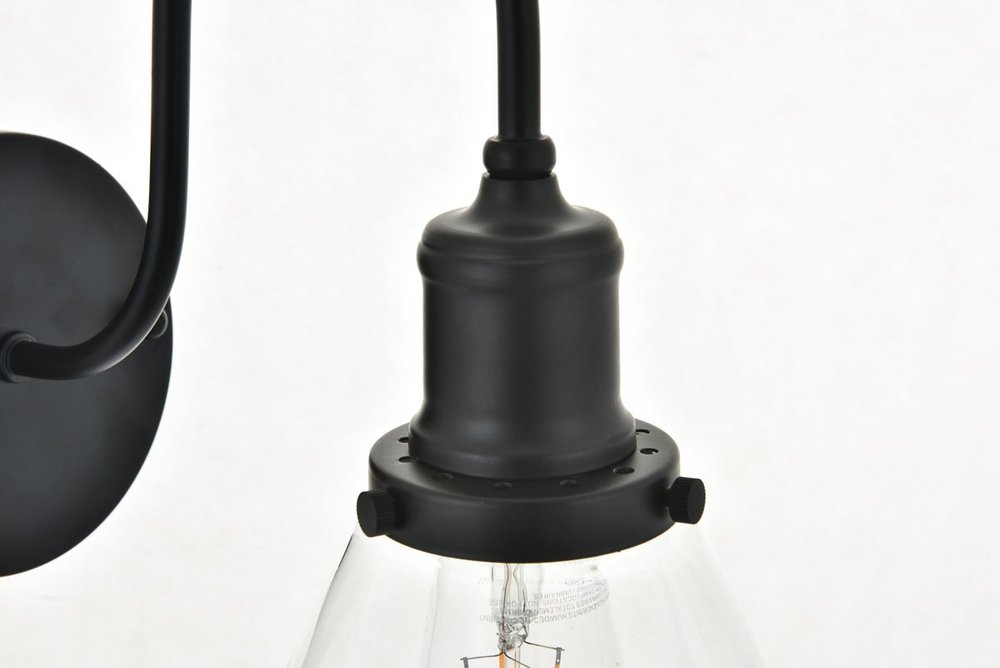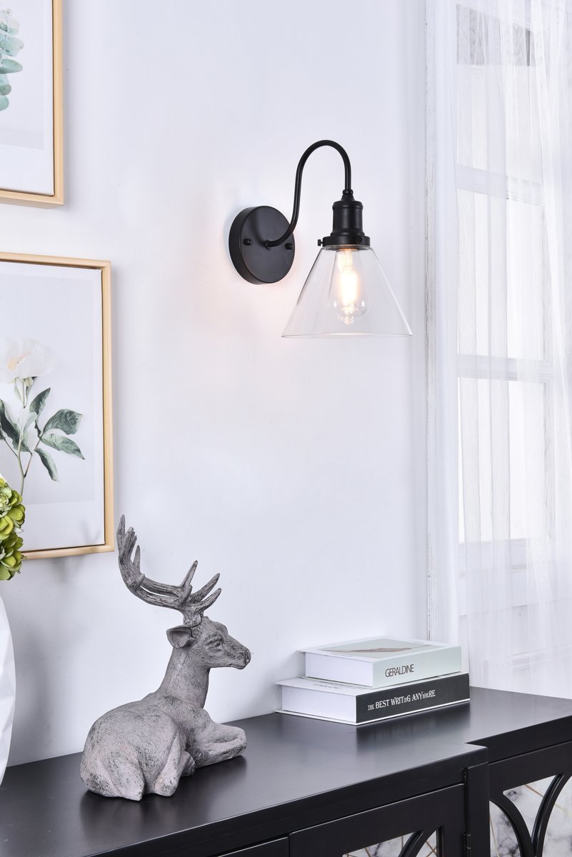 Take a step back through time with the Histoire wall lamp in a black finish. The ever delightful undulating arm supports the clear glass cone shade while light illuminates the surrounding area, creating a beautiful display of charm. A perfect wall lamp to act as your guide in your foyer or living room, or even to light up your bathroom walls, you will always enjoy its captivating light.