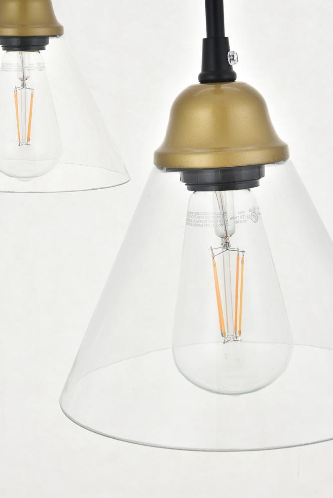 Take a step back through time with the Histoire 3-light pendant lamp in a brass and black finish. The ever delightful adjustable cords support the clear glass cone shades while lights illuminate the surrounding area, creating a beautiful display of charm. Hanging in a group of 3, this is the perfect pendant lamp to act as your guide in your foyer or living room, or even to light up your bathroom walls, you will always enjoy its captivating light.
