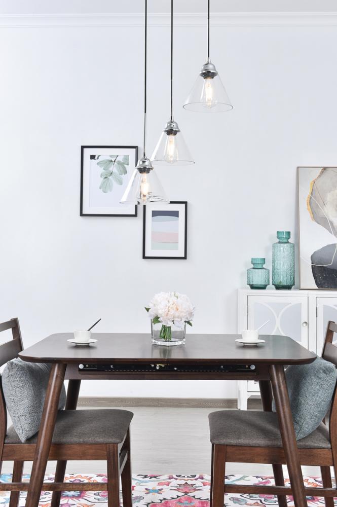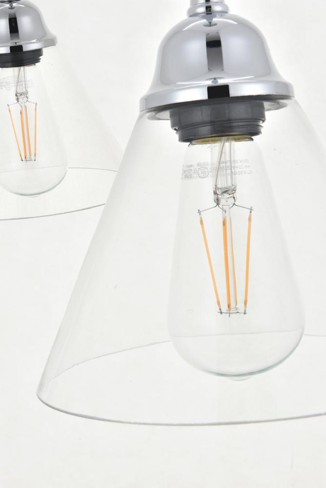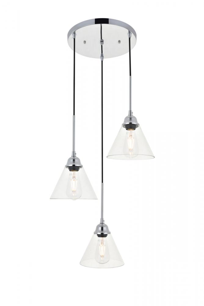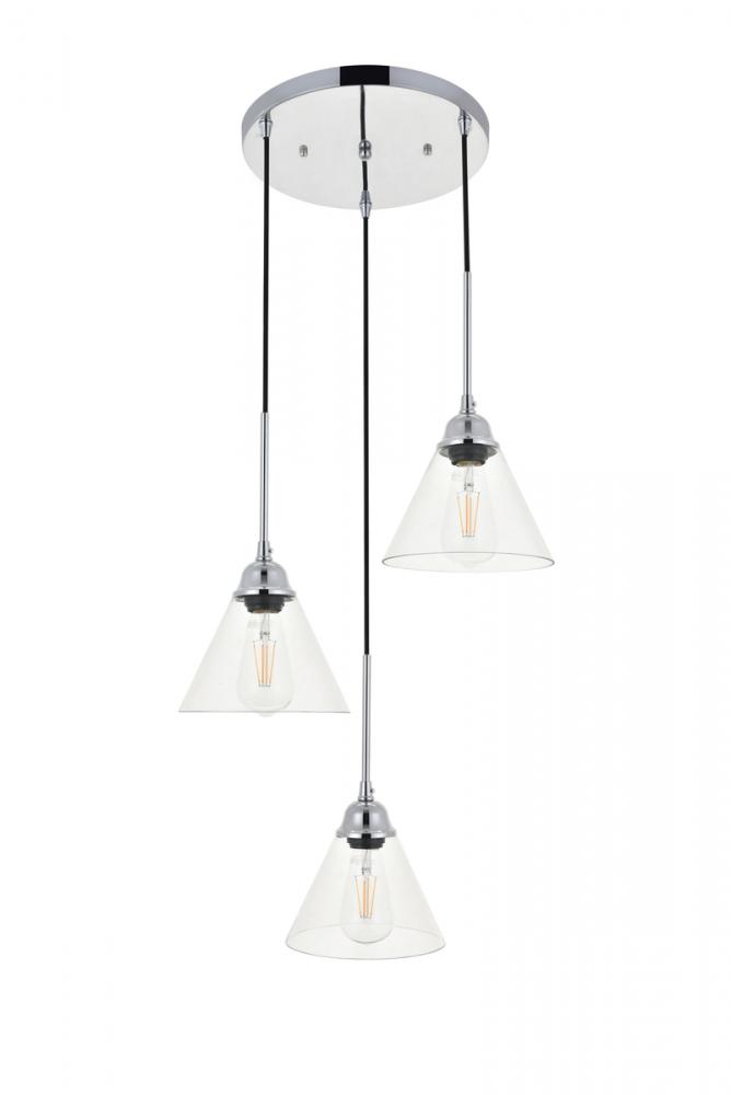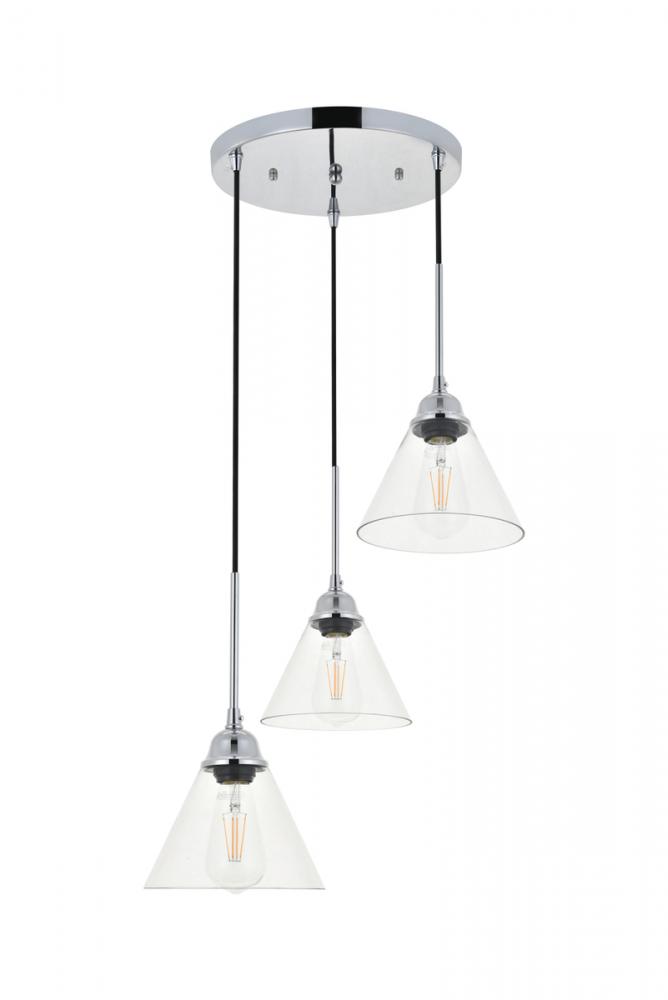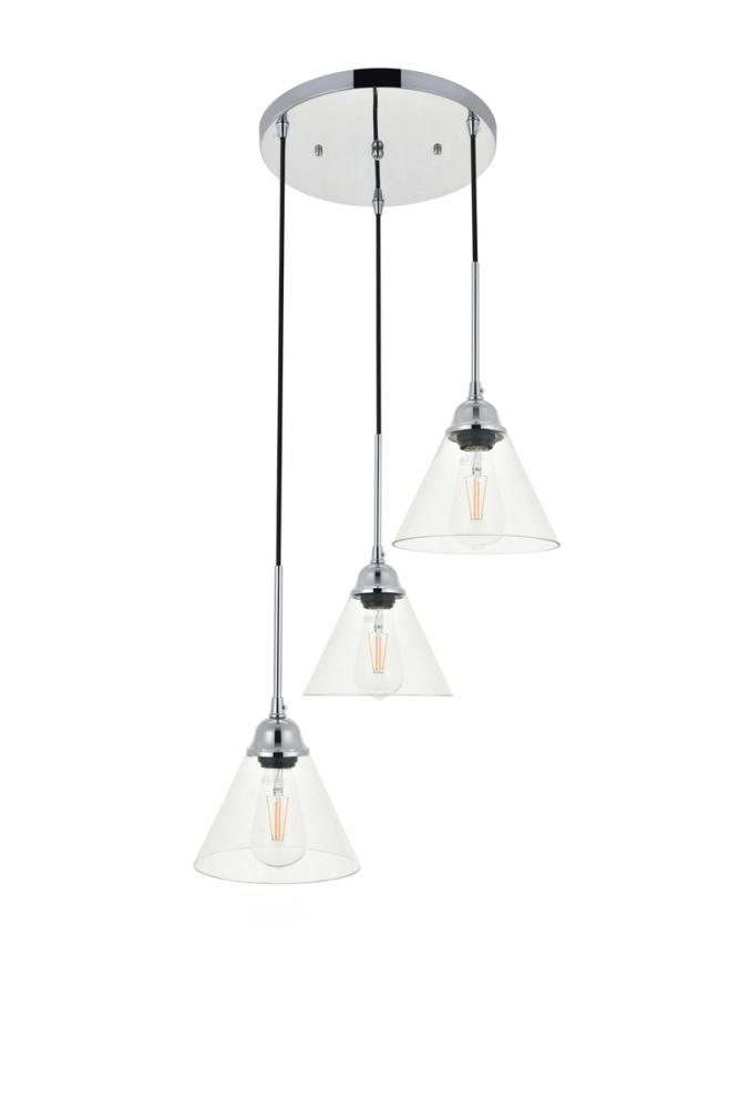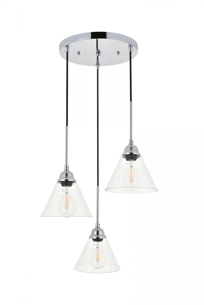 Take a step back through time with the Histoire 3-light pendant lamp in a chrome finish. The ever delightful adjustable cords support the clear glass cone shades while lights illuminate the surrounding area, creating a beautiful display of charm. Hanging in a group of 3, this is the perfect pendant lamp to act as your guide in your foyer or living room, or even to light up your bathroom walls, you will always enjoy its captivating light.