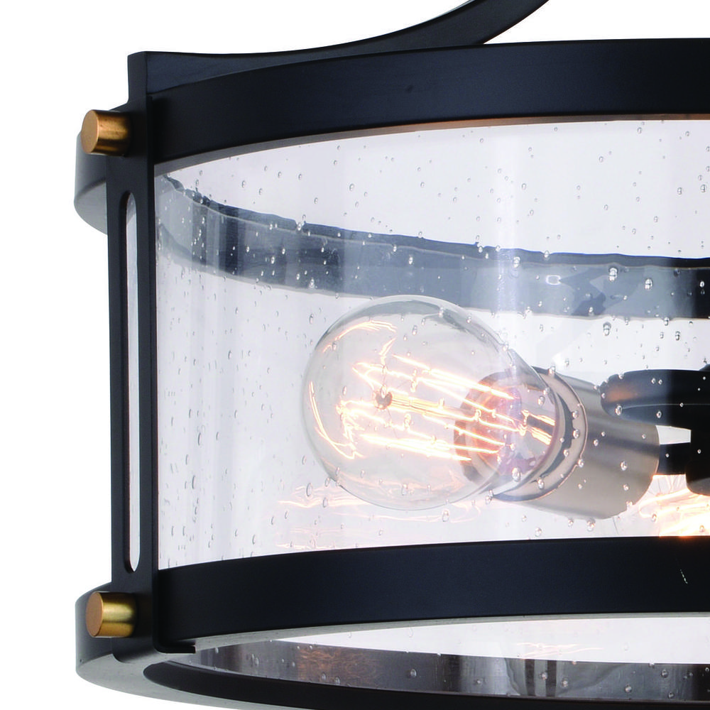 This modern soft industrial Holbrook collection brings a level of sophistication to a trendy farmhouse or urban style. The matte black and satin brass dual finish complements this look perfectly. Clear seeded glass encircles the framework giving the Holbrook true charm. Combine that with a vintage Edison style filament bulb to complete the look. Once you add this look to your home you’ll be pleasantly surprised as to how modern yet on trend your spaces will look.