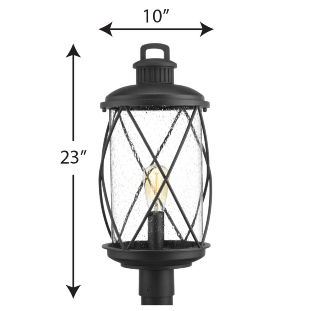 Hollingsworth lanterns feature a crisscross design that surrounds clear seeded glass, emulating popular farmhouse decor;Ideal for a variety of transitional exteriors when paired with either vintage or traditional bulbs;Textured Black finish;Post mounted, f