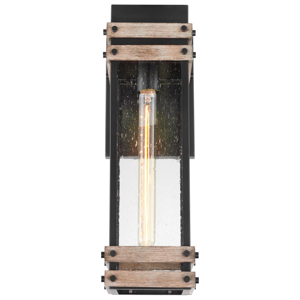 Homestead; 1 Light; Large Wall Lantern; Matte Black & Wood Finish with Clear Seeded Glass
