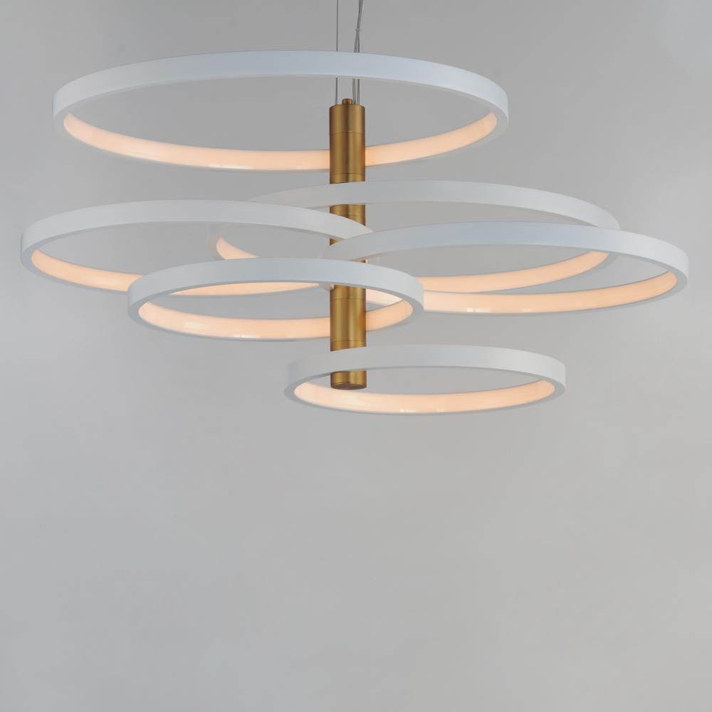 Rings of various sizes finished in Black are supported from a column of soft Gold. This European classic is a soft contemporary design which works in today's home decor.