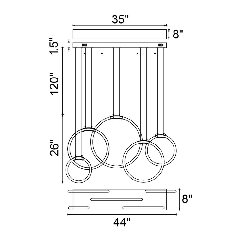 Designed with function and fashion in mind, the Hoops 5 Light Chandelier in Black exudes a minimalist appeal that's big in style. Five rings of LED bulb descend from a black rectangular canopy and bring a swathe of light to a space. This modern multi L