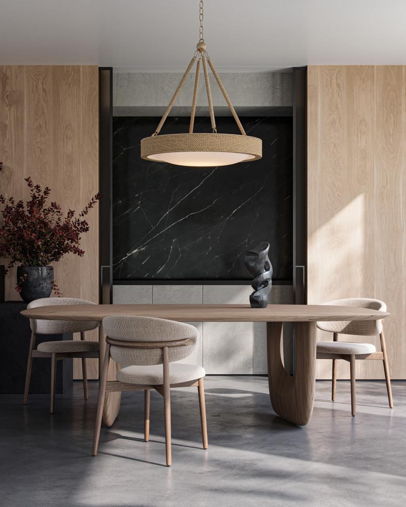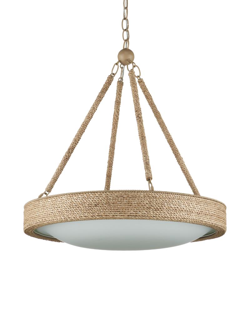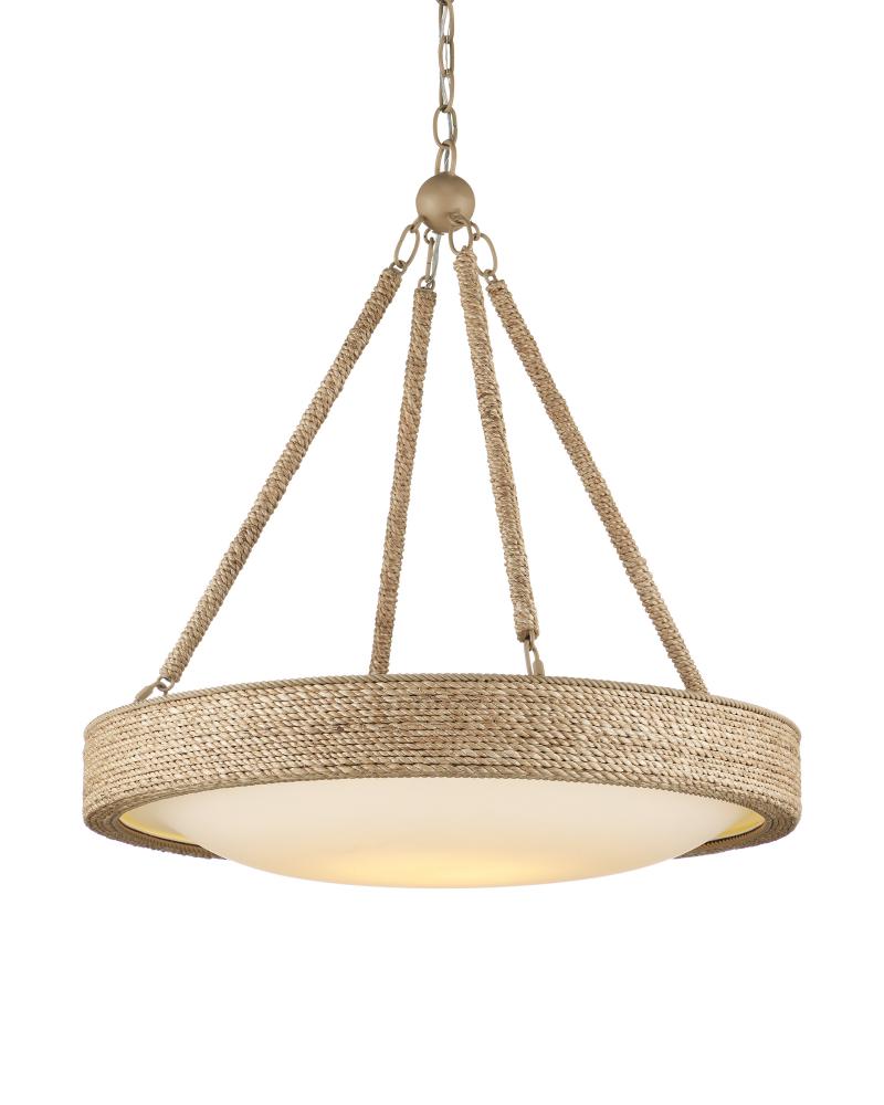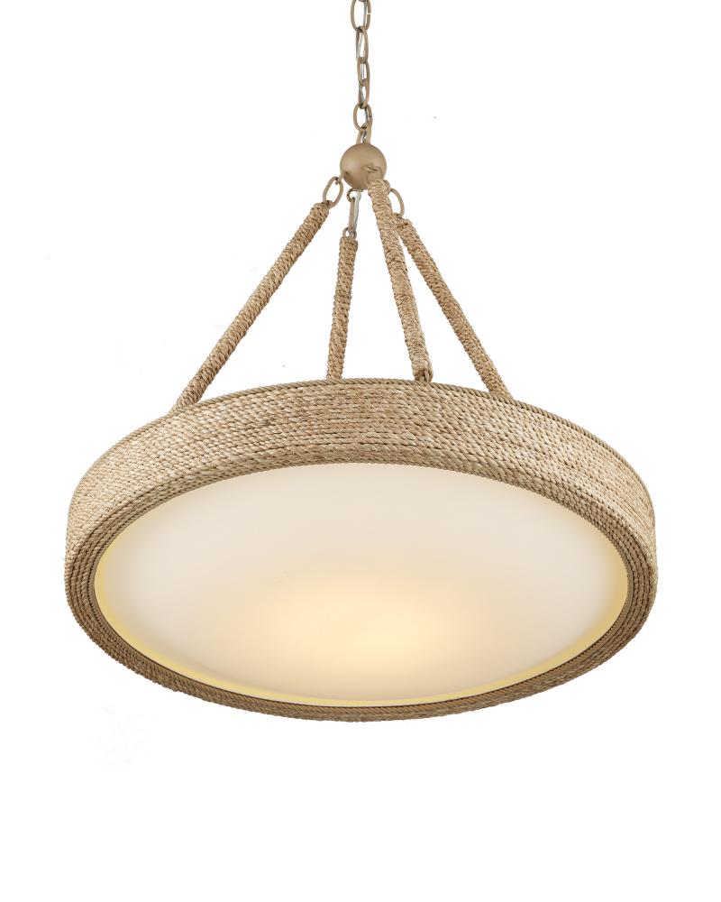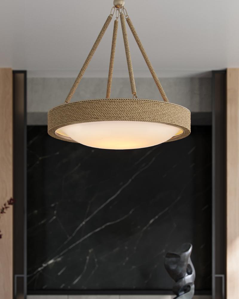 Proving the artistry of woven and wrapped natural materials, the Hopscotch Chandelier features a frame and arms seamlessly wrapped in abaca rope. A frosted glass diffuser is fitted to the bottom of the disc-like form, bowing downward in the middle to add an elegant touch. This rope chandelier is equipped with integrated LED technology. Adjustable from 32" to 100" with use of included chain/rod kit/cable. If your space calls for a longer drop, additional chain/rods/cable is available for purchase.