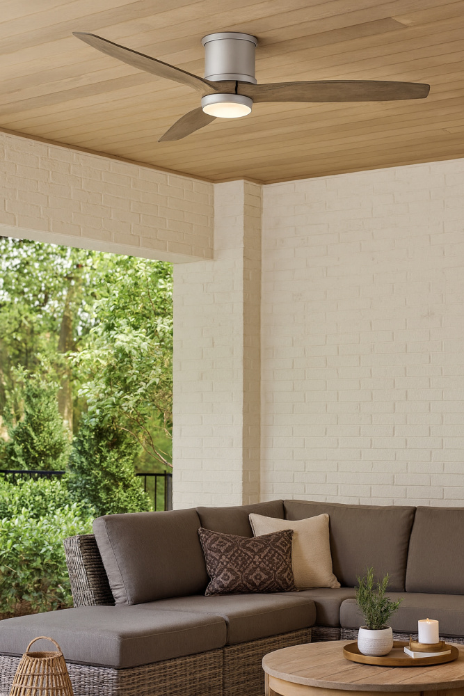 Clean and sleek, Hover Flush is a stunning modern upgrade for any project. Available in a variety of finish and blade combinations, Hover Flush comes equipped with integrated warm-dim LED lighting and DC motor technology to deliver excellent energy efficiency. Hover Flush is so versatile; it can be used for both indoor and outdoor spaces.