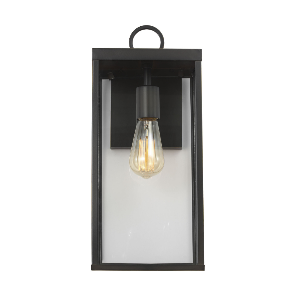 The Drew & Jonathan Howell Outdoor series infuses classic design with clean, contemporary lines. The frame is crafted from weather-resistant aluminum in an Antique Bronze or Textured Black finish for an industrial appeal and a ring detail to complement the design. Inside, Howell features an open bulb base that aims the light out over your space from a single light bulb (sold separately).