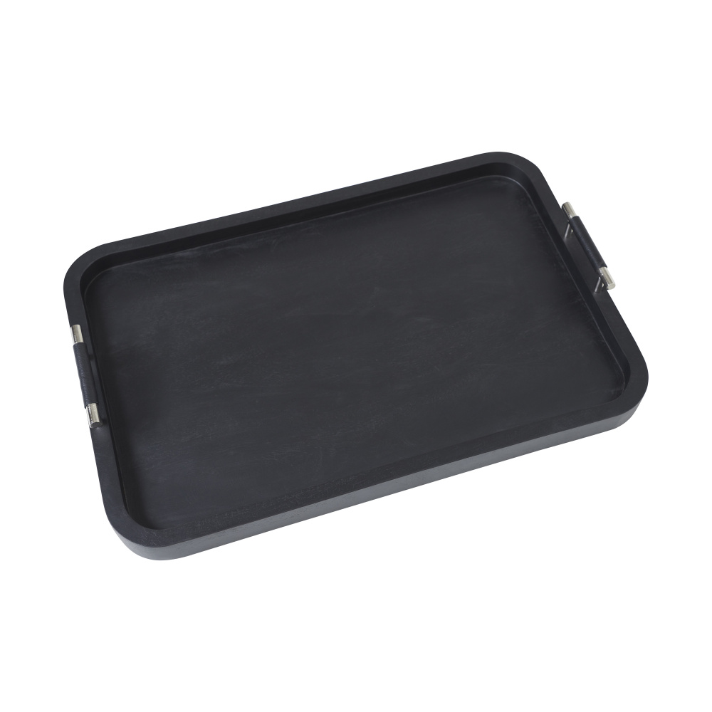 A must-have accessory for any stylish home, the Hudson tray is yet another reason to love Steven Sabados. The Canadian television host, artist and designer put his design savvy on display when creating this stunning piece that melds form and function. Crafted from mango wood with a dark and dramatic black painted finish, this decorative tray is perfect for styling any flat surface in the home or office. Moving it from one room to the next is a breeze thanks to sleek genuine leather and plated nickel handles that add a touch of luxury. Use this gorgeous tray to create an eye-catching vignette with candles, magazines, a vase and more to elevate any interior.