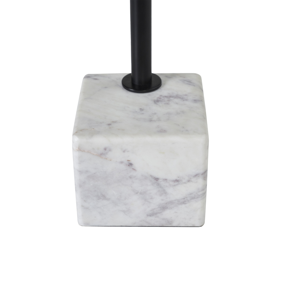 Looking for the perfect complement to your design project? The Hull side accent table is poised to impress. Measuring 14 inches wide, it’s perfectly sized to sit comfortably next to a couch, lounge chair or bed. Designed with a compact footprint, its natural white marble and black finished iron base ensures an airy feel while maintaining ample space on its acacia tabletop. Simple and sleek in its design, this end table would be a great fit in any modern space.