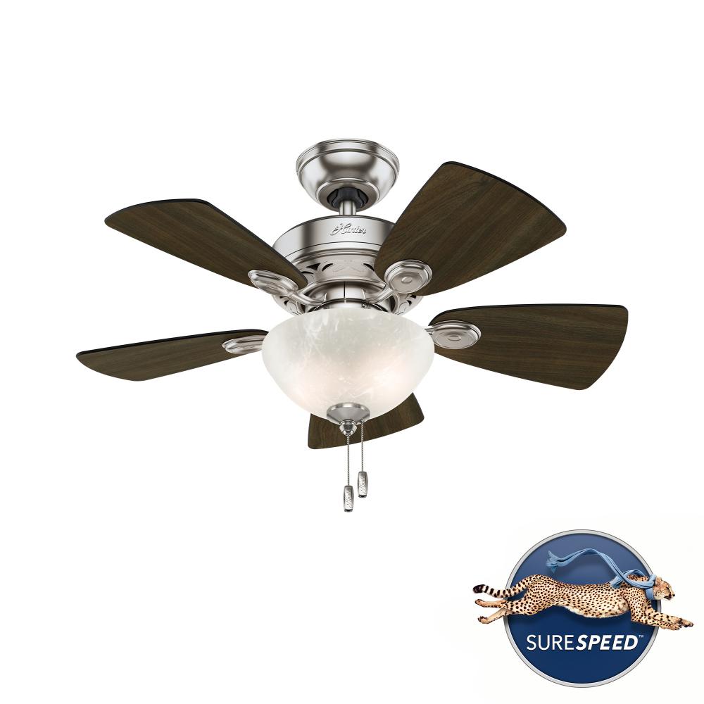 The 34-inch Watson is a little fan that packs a big punch. These small ceiling fans with lights are perfect for bedrooms, laundry rooms, walk-in closets, or bathrooms. Despite Watson's small stature, it moves a lot of air with a whisper-quiet performance. The hole patterns and petal-shaped blades create a floral vibe that adds a delicate touch to liven up your room.