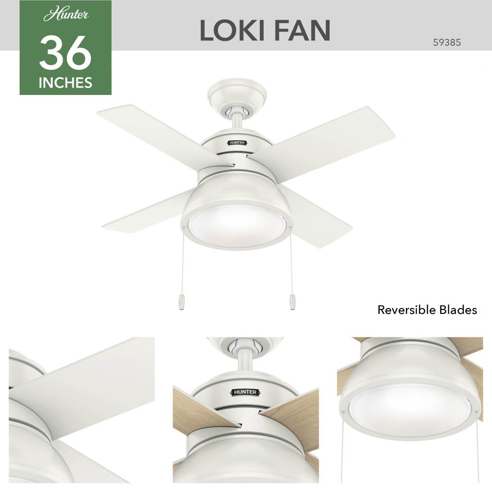 Brighten up small rooms with the Loki ceiling fan. Available in stunning finishes with reversible blade finishes, you can customize the look of this small ceiling fan in your guest bedrooms, home offices, nurseries, and keeping rooms. The included pull chains make it easy to control the LED light and the three fan speeds. Featuring the WhisperWind? motor, you?ll get the cooling power you need with whisper-quiet performance you expect.