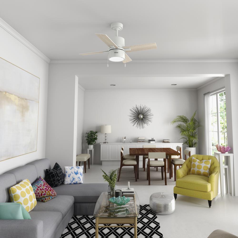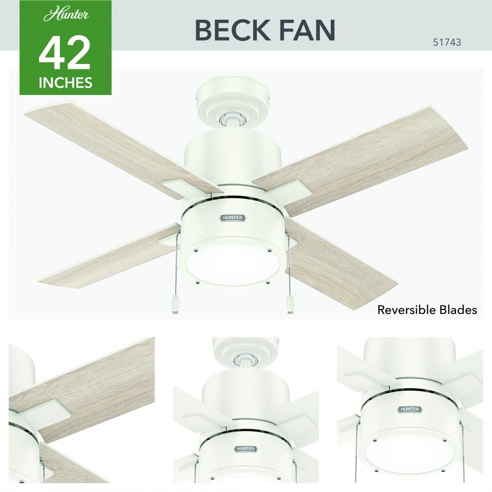 From farmhouse to modern styles, the Beck modern ceiling fan with LED light features a simple design and comes in a variety of finishes to complement your style. This small ceiling fan fits perfectly in smaller spaces including laundry rooms, mudrooms, home offices, and guest bedrooms. The included pull chains make it easy to turn the light on and off as well as to adjust the fan speed. The Beck comes with our WhisperWind® motor technology to deliver the powerful, efficient airflow you expect while maintaining whisper-quiet performance.