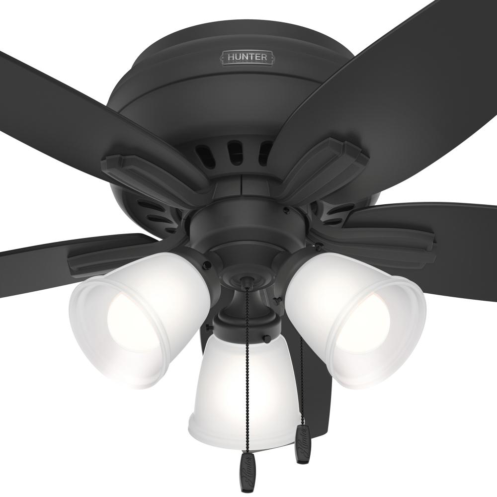 With its charming appearance, the Newsome low-profile ceiling fan with TrueLight™ technology will complement your casual design style. The clean line details throughout the fan body and blade irons work together to create a coherent design that will fit any small room with a low ceiling. The three-light fixture provides your ideal ambiance while the 42-inch blades are powered by a three-speed WhisperWind® motor delivering superior air movement and whisper-quiet performance so you get all the cooling power you want without the noise. The Newsome Collection offers you the freedom to choose from many different sizes, light kits, and other options to maintain a consistent look throughout every room in your home.