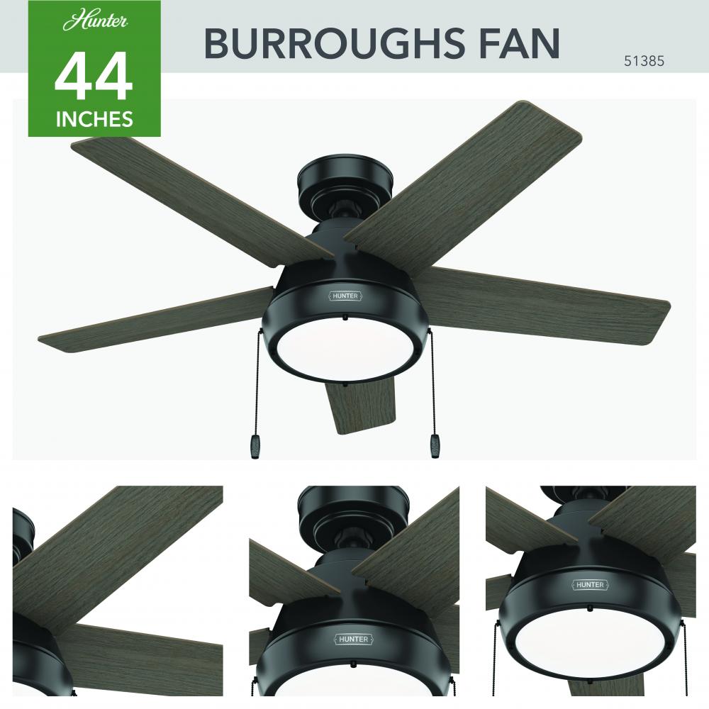 The Burroughs is an all-around cool fan. Its organic modern design is sleek but features subtle geometric inspirations and wood grain blade finishes for a balanced look. This modern ceiling fan is built with our SureSpeed? Guarantee, delivering optimized, high-speed airflow you'll appreciate in your small spaces during warmer months.