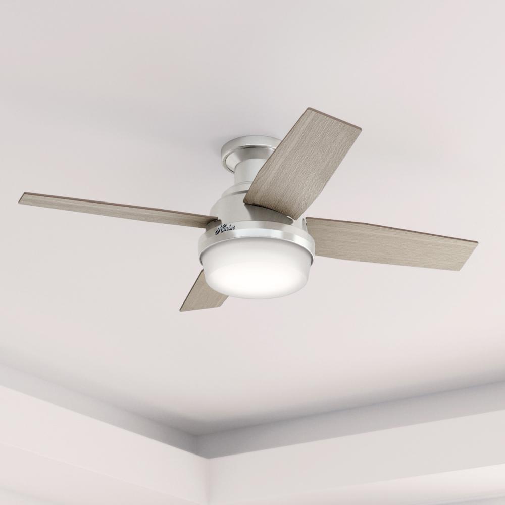 For homes with large rooms and average height ceilings, we offer the Dempsey low profile 44 inch fan. This fan will fit seamlessly in your home. Its angular blades and choice of beautiful finishes will create an inspired look in your space. The Dempsey’s fully dimmable LED light gives you control over the brightness in your space, and the 44 inch blades will keep your great room feeling good. Add other fans from the Dempsey collection for consistent modern style throughout.