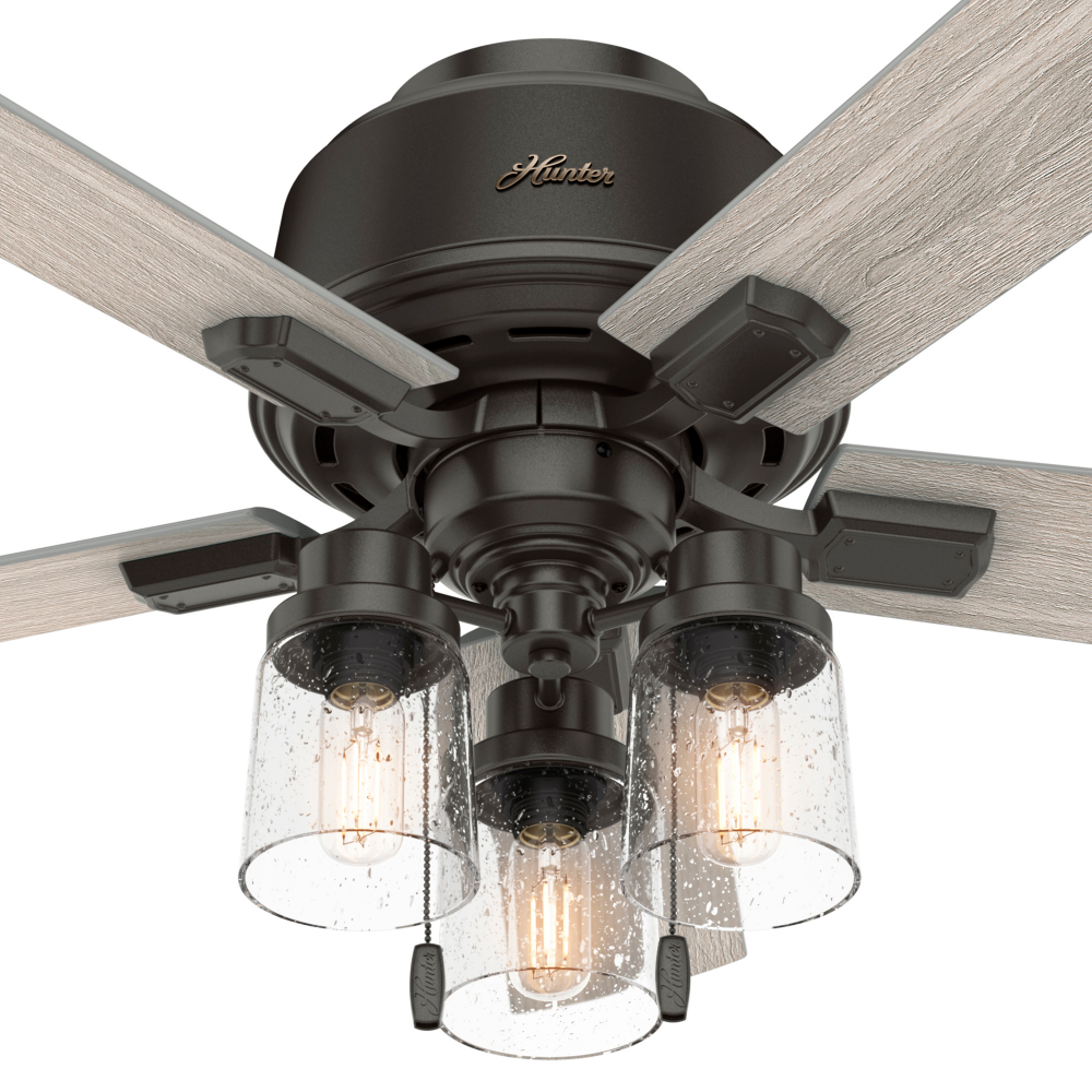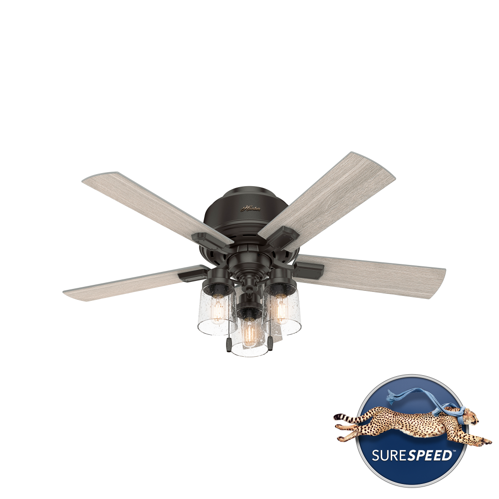 Hunter 44 inch Hartland Noble Bronze Low Profile Ceiling Fan with LED Light Kit and Pull Chain