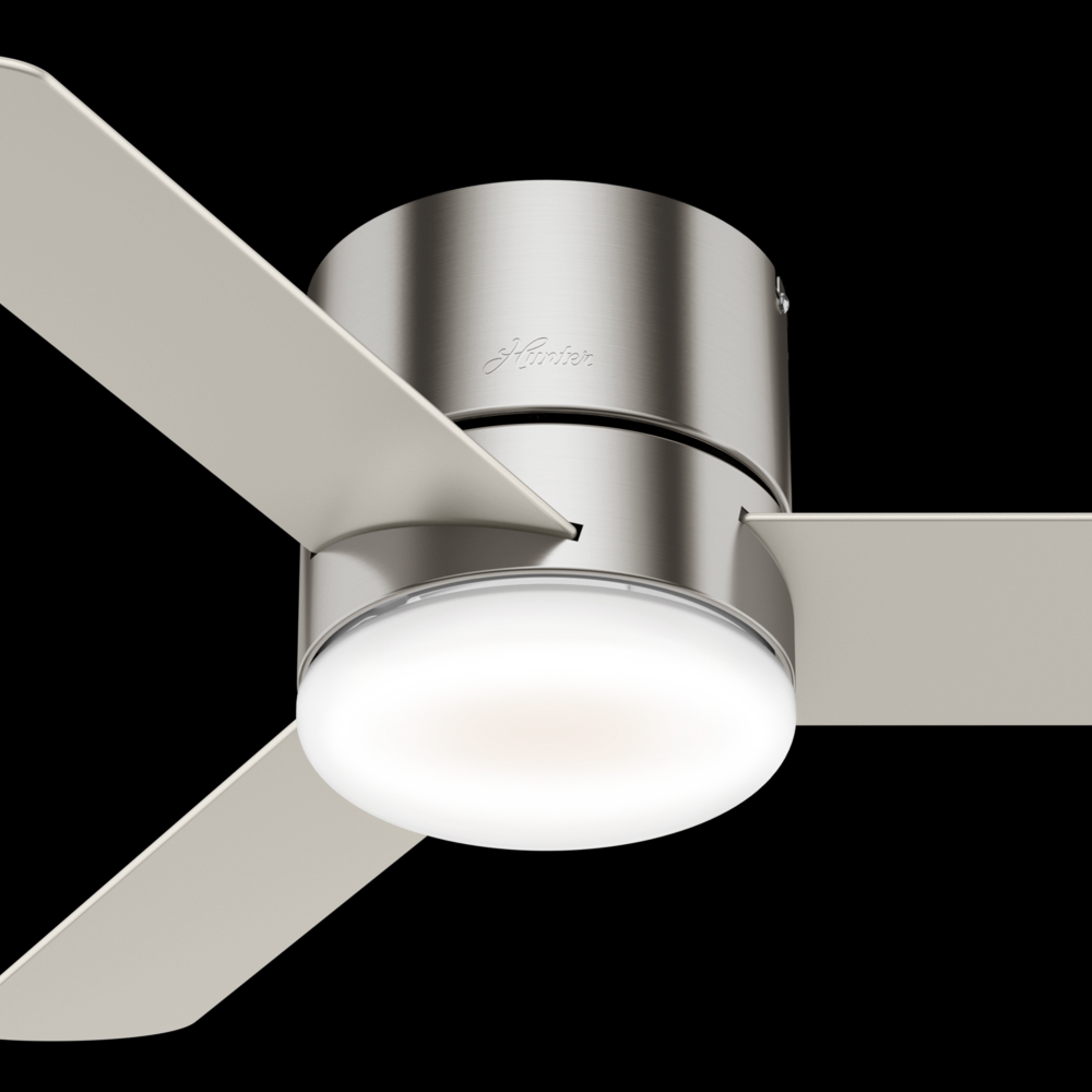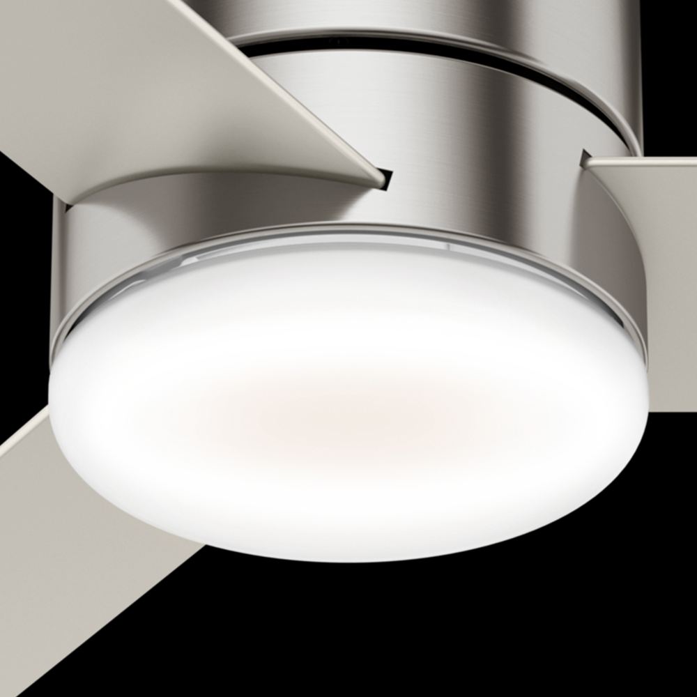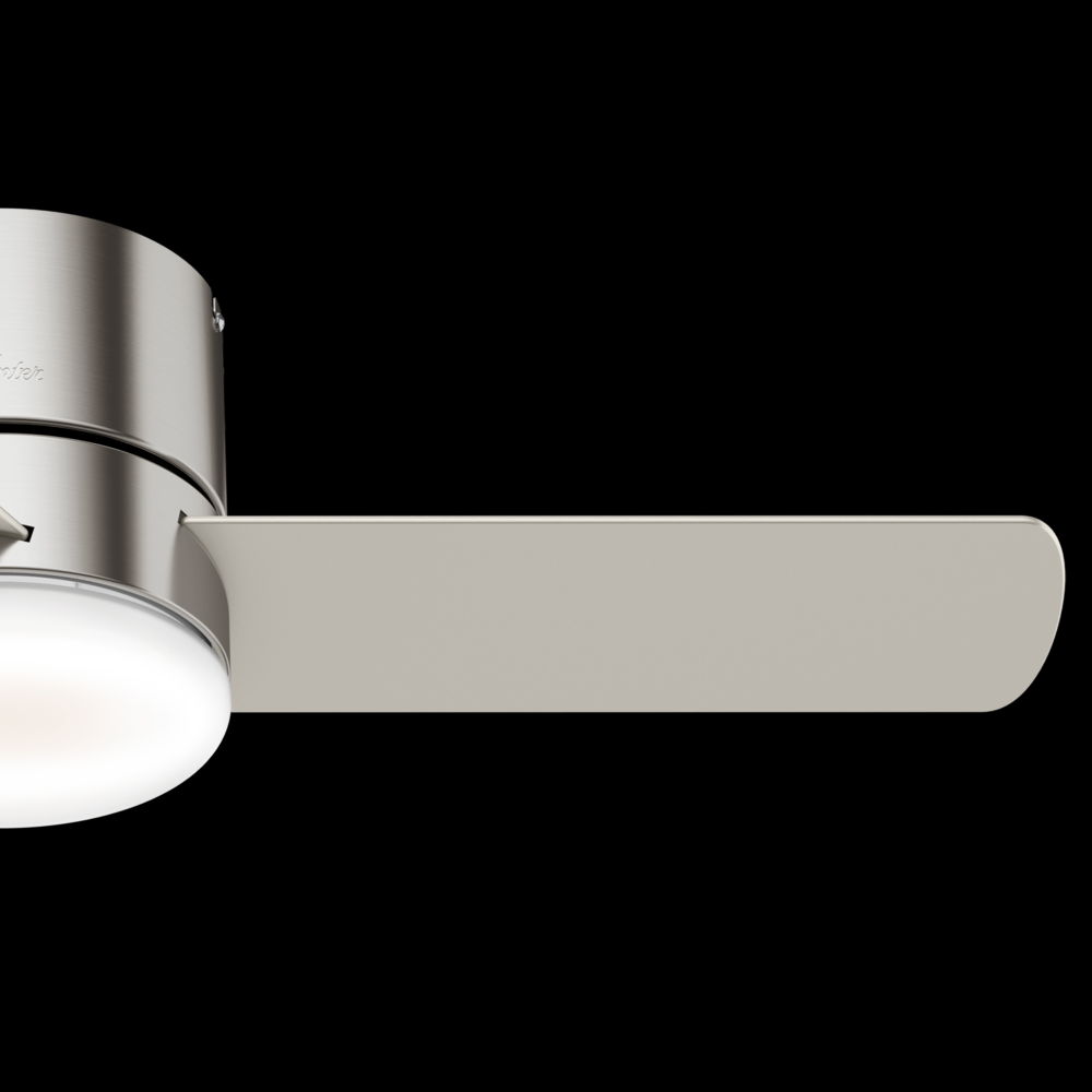 Available in three finishes, the Minimus ceiling fan's minimalist design makes it a great fit in your modern and transitional spaces. Designed to fit flush in rooms with low ceilings, this ultra-low-profile ceiling fan is perfect for small rooms with low ceiling heights. The Minimus ceiling fan boasts a three-speed WhisperWind® motor to deliver powerful, efficient airflow. You can easily control the dimmable, energy-efficient LED light and fan speeds with the included handheld remote.