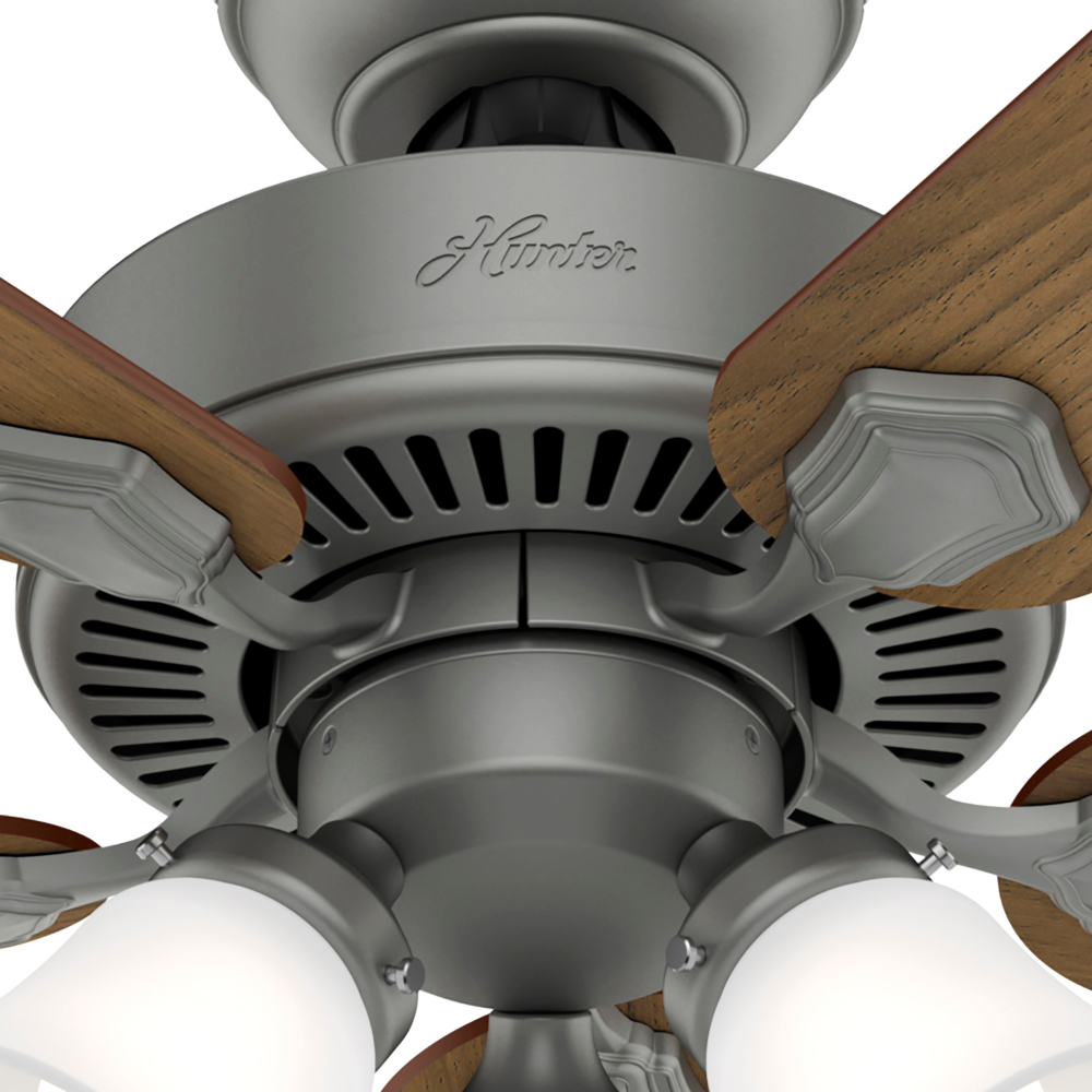 The Swanson?s 44-inch blade span and easy to use pull chains makes it the perfect ceiling fan for small rooms. Part of the Professional Series, the Swanson collection is available in a variety of sizes, finishes, and light kit combinations.