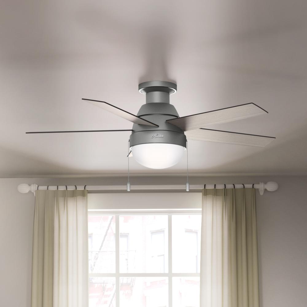 With four finishes to choose from, the Anslee low-profile ceiling fan is the perfect accent for your small or standard-size room's contemporary interior design style. The low-profile housing is specially designed to fit flush to the ceiling and is ideal for use in rooms with low ceilings. Enjoy full control over setting the perfect atmosphere with our energy-efficient LED bulbs. The reversible three-speed WhisperWind® motor delivers ultra-powerful air movement with a whisper-quiet performance so you get the cooling power you want without the noise you don't.