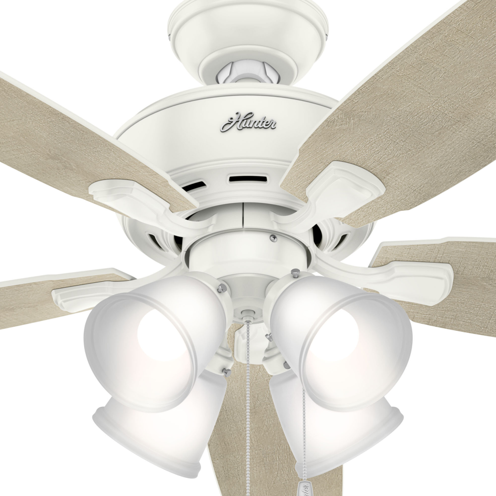 Available in three finishes, the Amberlin traditional ceiling fan with light is a great fit in your casual, transitional spaces. This updated classic boasts a three-speed WhisperWind? motor to deliver ultra-powerful air movement and whisper-quiet performance so you get all the cooling power without the noise. Featuring energy-efficient LED bulbs in a four-light fixture, this on-trend ceiling fan provides excellent lighting without overpowering your room.