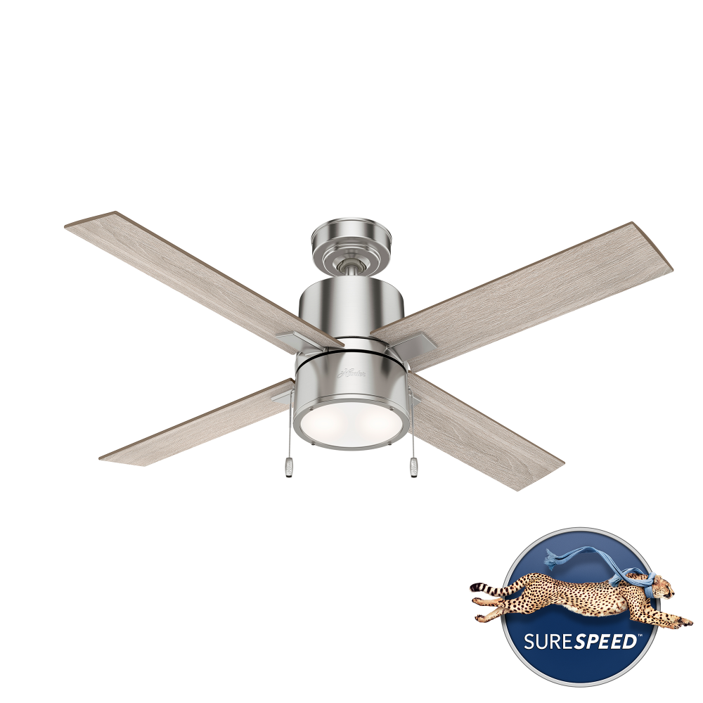 The Beck modern ceiling fan with LED light has a simple design with clean finishes to freshen up your indoor spaces. Available in a variety of finishes, this large ceiling fan will complement your style from farmhouse bedrooms to modern home offices. Use the included pull chains to easily turn the light on and off as well as to adjust the fan speed. The Beck comes with our WhisperWind® motor technology to deliver the powerful, efficient airflow you expect while maintaining whisper-quiet performance.