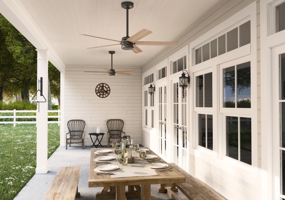 Damp-rated ceiling fans are a great option for covered patios, screened porches, and other areas that are not directly exposed to rain, snow, water, or moisture