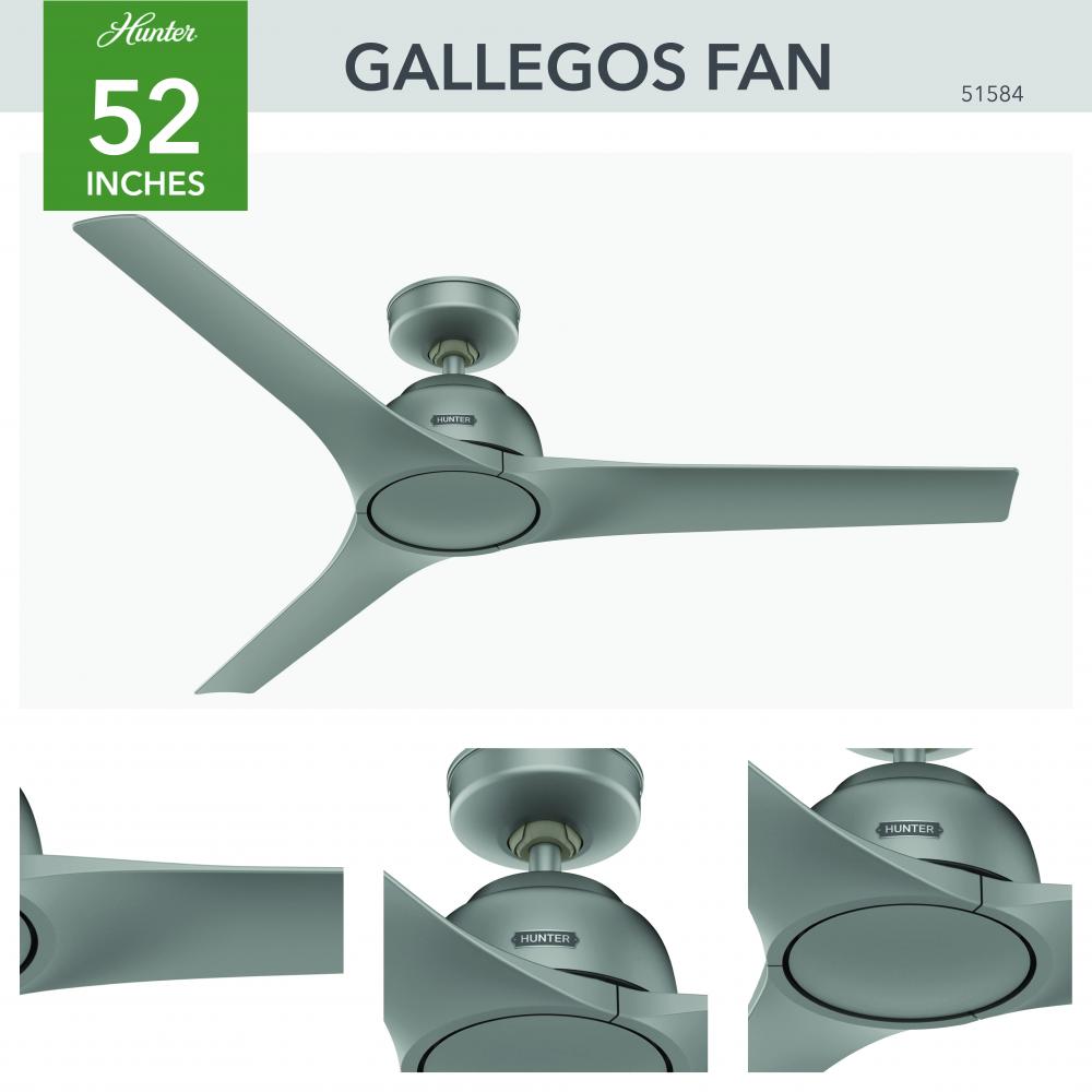 The Gallegos damp-rated ceiling fan is the must-have modern accent for your covered porch, patio, or large indoor spaces. Designed to keep your place looking—and feeling—cool all year round, the Gallegos delivers a quiet, smooth performance in a sophisticated style. Our 3-speed WhisperWind® reversible motor and SureSpeed® Guarantee make this ceiling fan the total package.