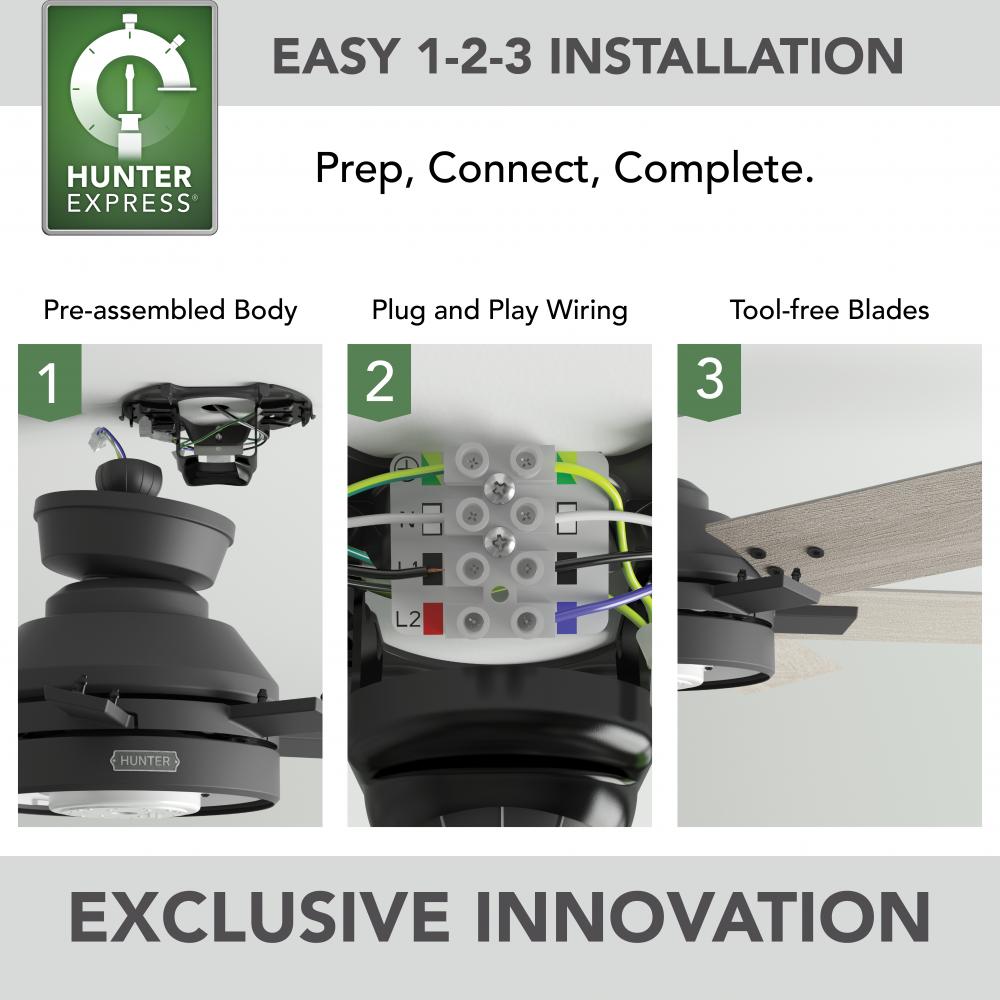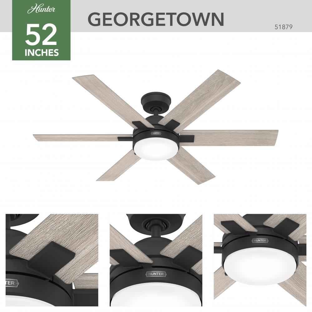 The HunterExpress® innovation of the Georgetown 52-inch fan with LED light makes installation as easy as 1-2-3. We designed the Georgetown with speed and ease in mind, and developed three-step prep, connect, and complete process to get your fan up and running. This fan provides airflow you can feel with Hunter's patented SureSpeed® technology. Consider adding the Georgetown to your bedroom or living space to relax in comfort.
