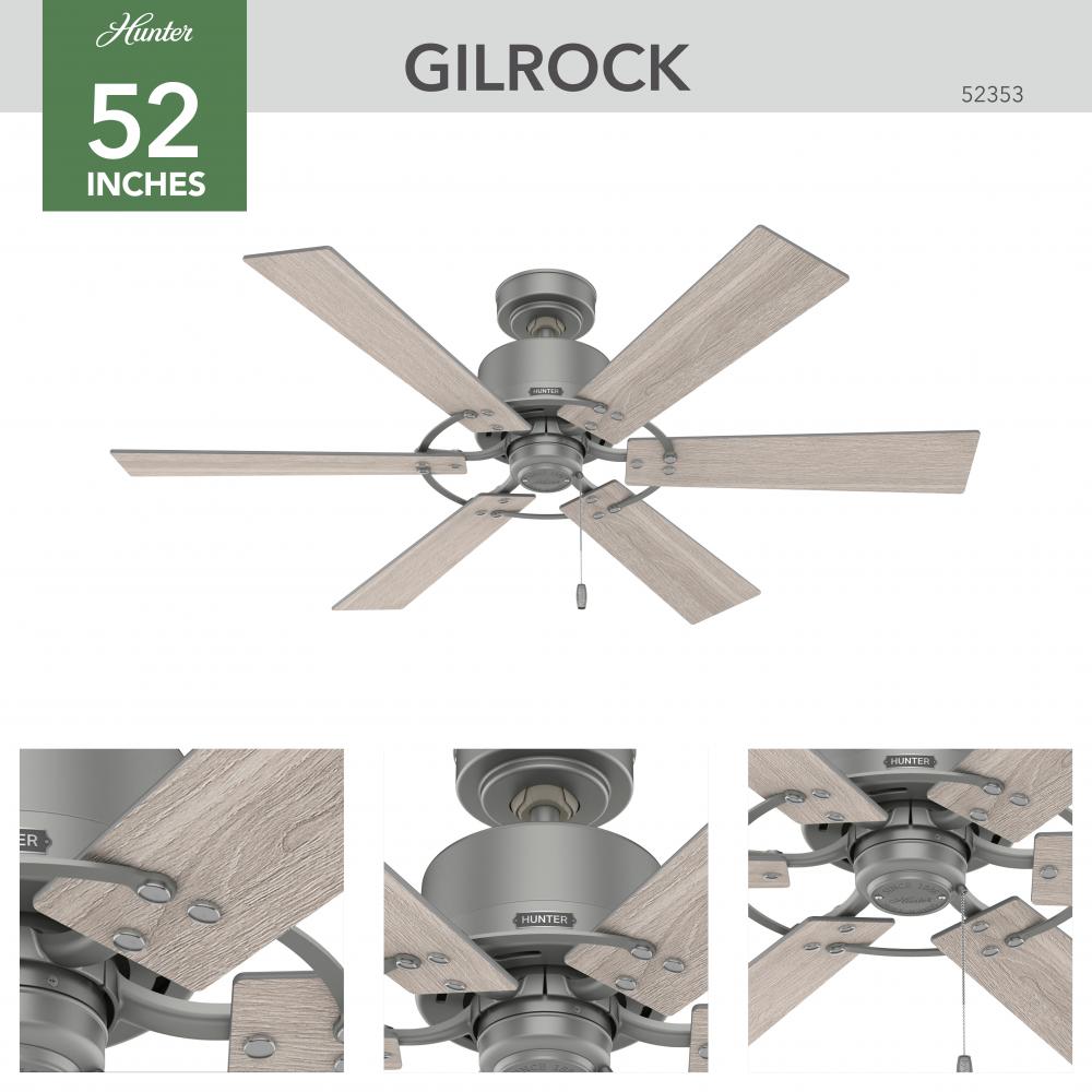 Upgrade your farmhouse decor with the Gilrock ceiling fan. With a mixture of industrial and modern details, it is the icing on your room. Multiple finishes make it an easy choice for any room you are trying to elevate. Enjoy the quiet with the reversible, 3-speed WhisperWind® motor that delivers ultra-powerful air movement with whisper-quiet performance so you get the cooling power you want without the noise you don’t™. Check out our industrial lighting collections to mix and match with your new Gilrock fan.