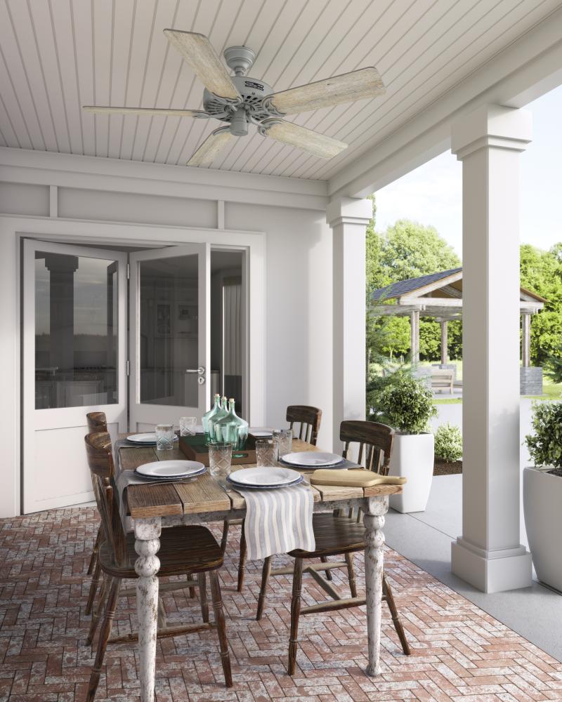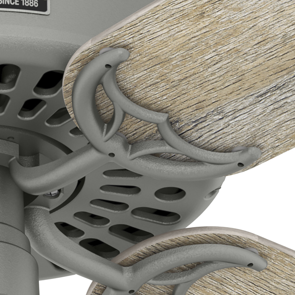 Proudly displayed in homes for decades, the one-of-a-kind Hunter Outdoor Original® White Blades 52-inch ceiling fan continues to deliver superior performance and years of endurance. The powerful motor features a cast-iron housing and a unique oil bath system that continually lubricates bearings, virtually eliminating noise and wear. A timeless addition to any room or covered space exposed to moisture and humidity, this fan is arguably one of our best outdoor ceiling fans.