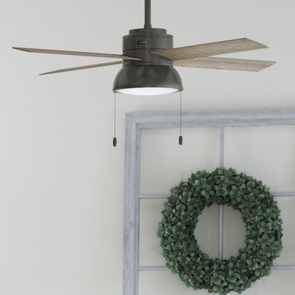 Let the Loki ceiling fan be the finishing touch to your large bedrooms, living rooms, nurseries, and home offices. This indoor ceiling fan is available in stunning finishes, including Weathered Copper and our premium Polished Nickel finish. The included pull chains make controlling the integrated LED light and three fan speeds easy. Featuring the WhisperWind? motor, you?ll get the cooling power you need with whisper-quiet performance you expect.